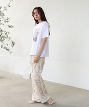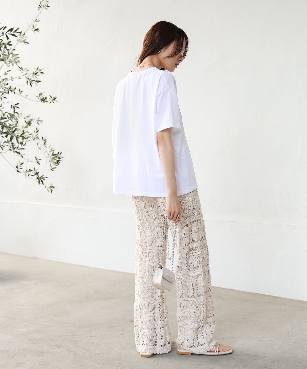 程よいゆったりサイズの刺繍プリントTがBabから登場!プリントの上にチュールを重ねてニュアンス感をプラス。カジュアルすぎないので、綺麗めなスカートやパンツとも相性抜群です!幅広くコーディネートを楽しめるので色違いで持っても間違いないアイテム◎