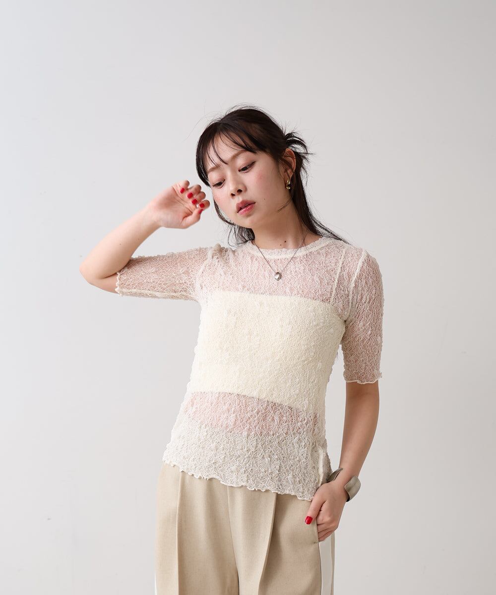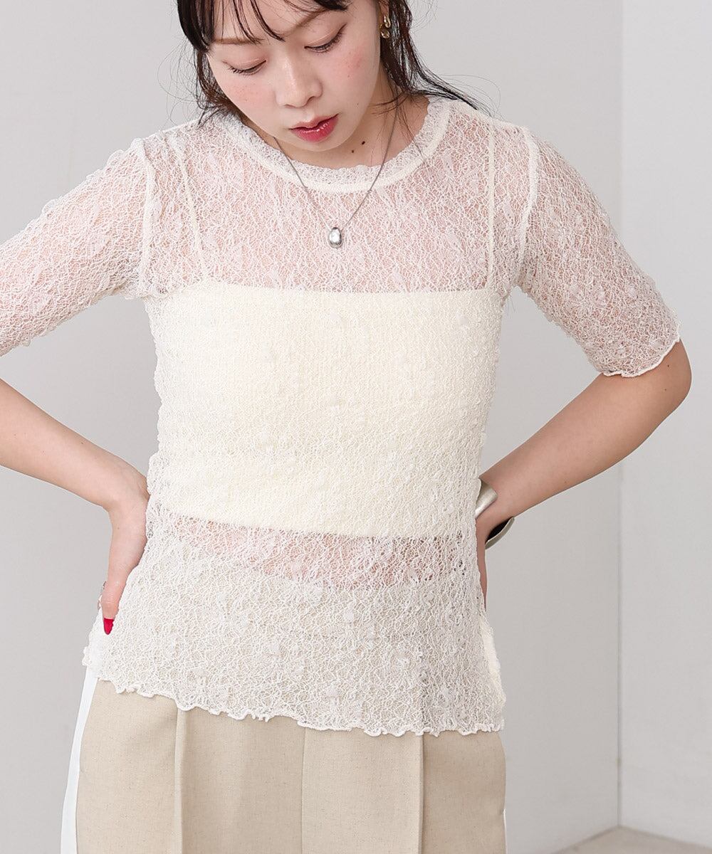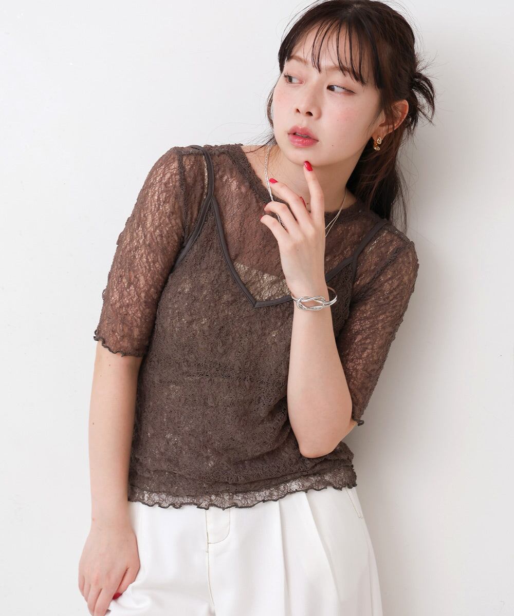 トレンドの重ね着スタイルが叶う、透け感のあるレーストップスが登場!