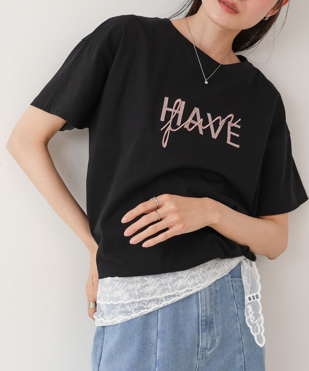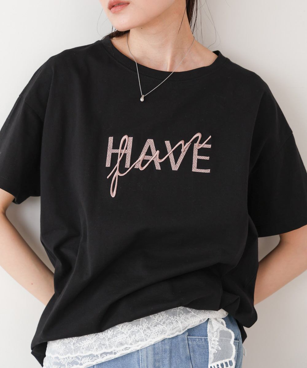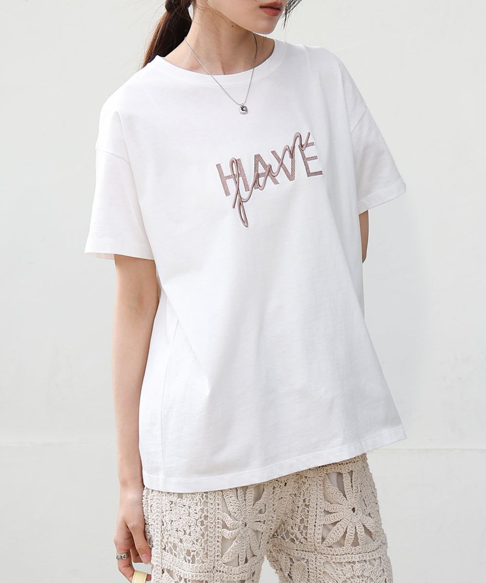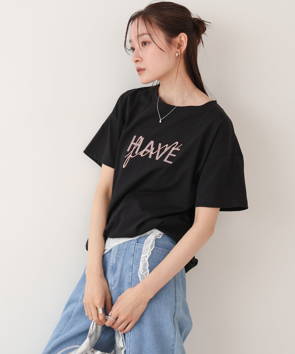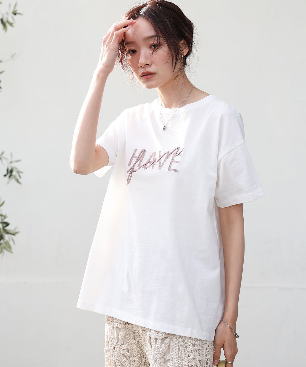 ロゴ刺繍デザインTシャツ