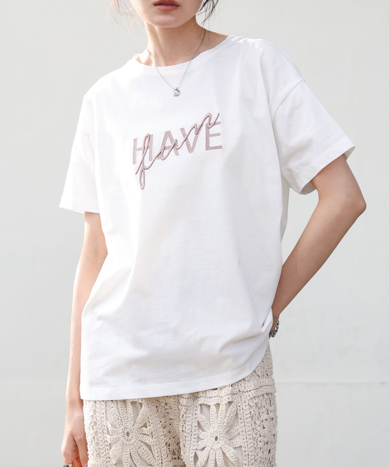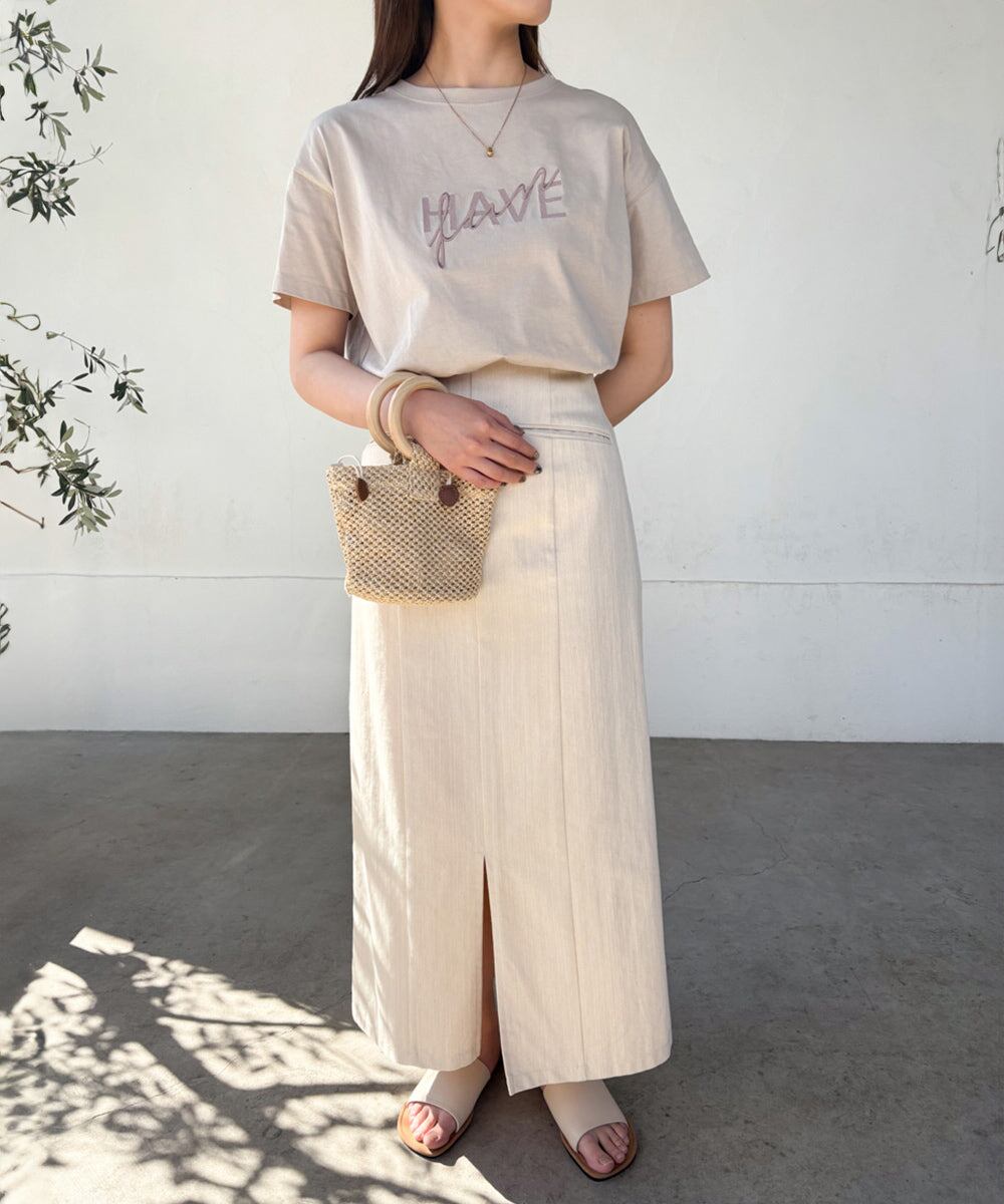 刺繍があしらわれたロゴTシャツ。腕周りやウエスト周りをカバーしてくれる程よいサイズ感になっているので着回しも抜群です◎。ベーシックな色展開なので色違いで持っていても間違いないアイテム。