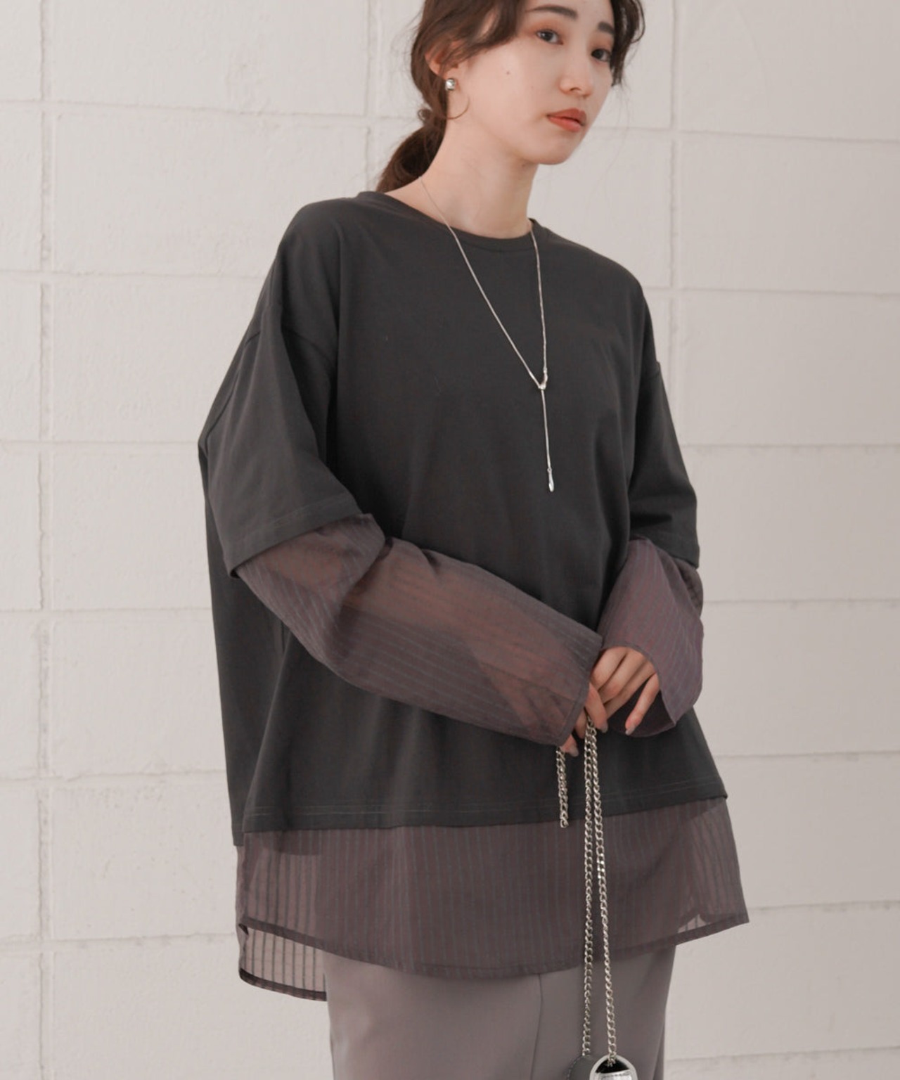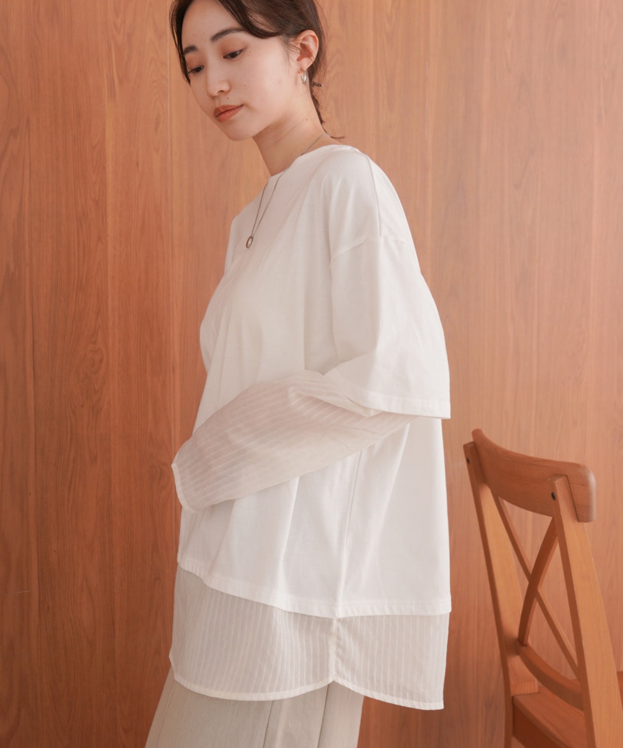 シアーストライプレイヤードプルオーバー