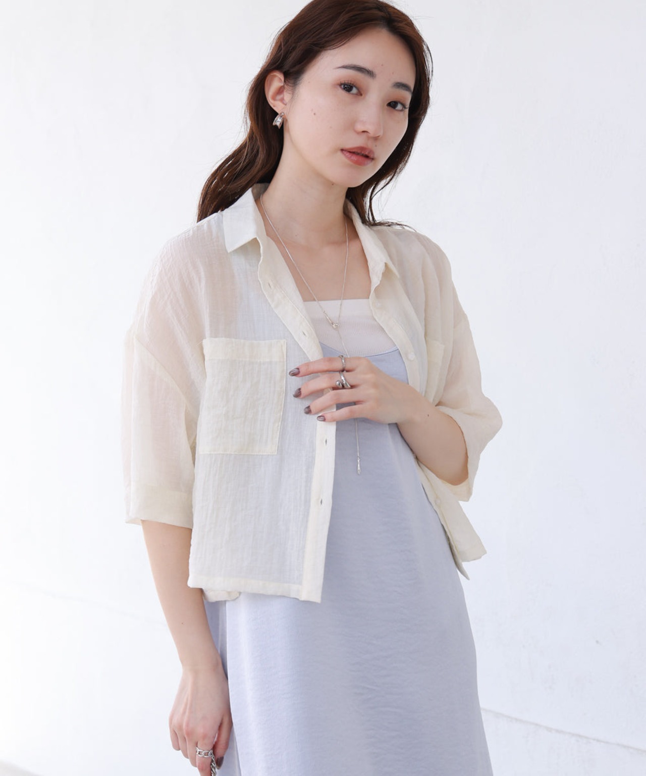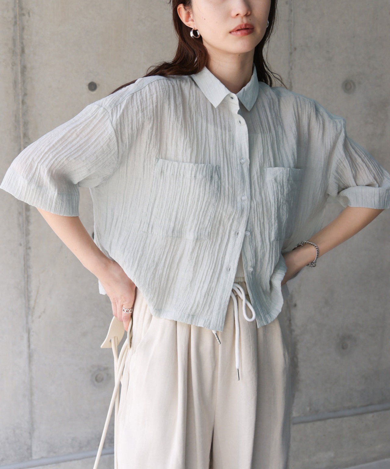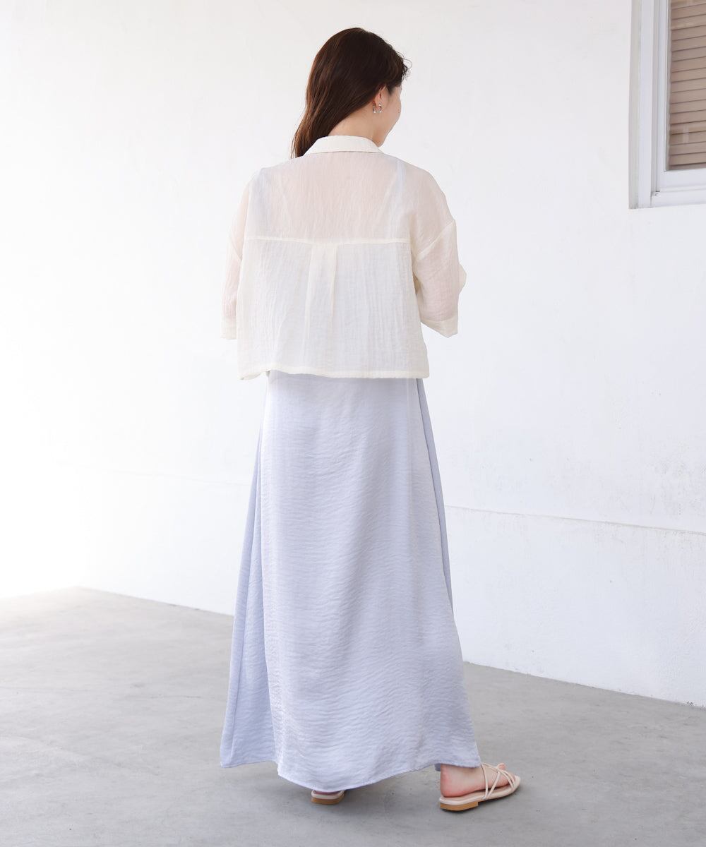 今年も大人気のショート丈シャツブラウスが色展開も爽やかに新登場しました!透け過ぎない適度なシアー感で いつものレイヤードコーデを大人なヘルシースタイルに仕上げてくれます。夏らしいしわ生地が軽やかな印象を与え、ゆったりめのサイジングでリラクシーな着心地を叶えてくれる1枚です。