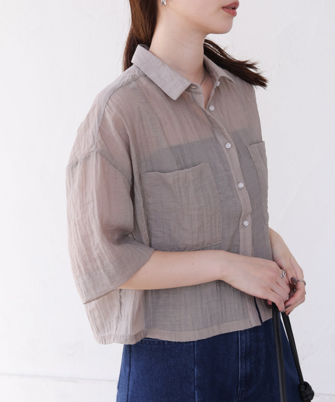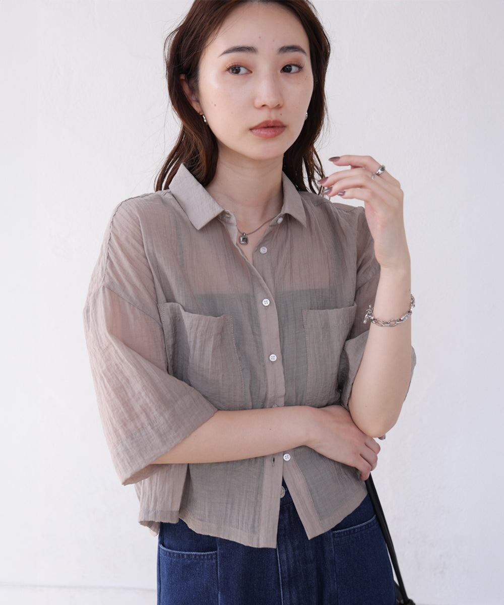 シアーショートシャツブラウス