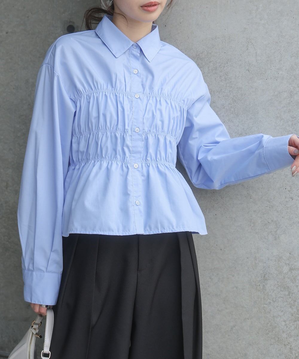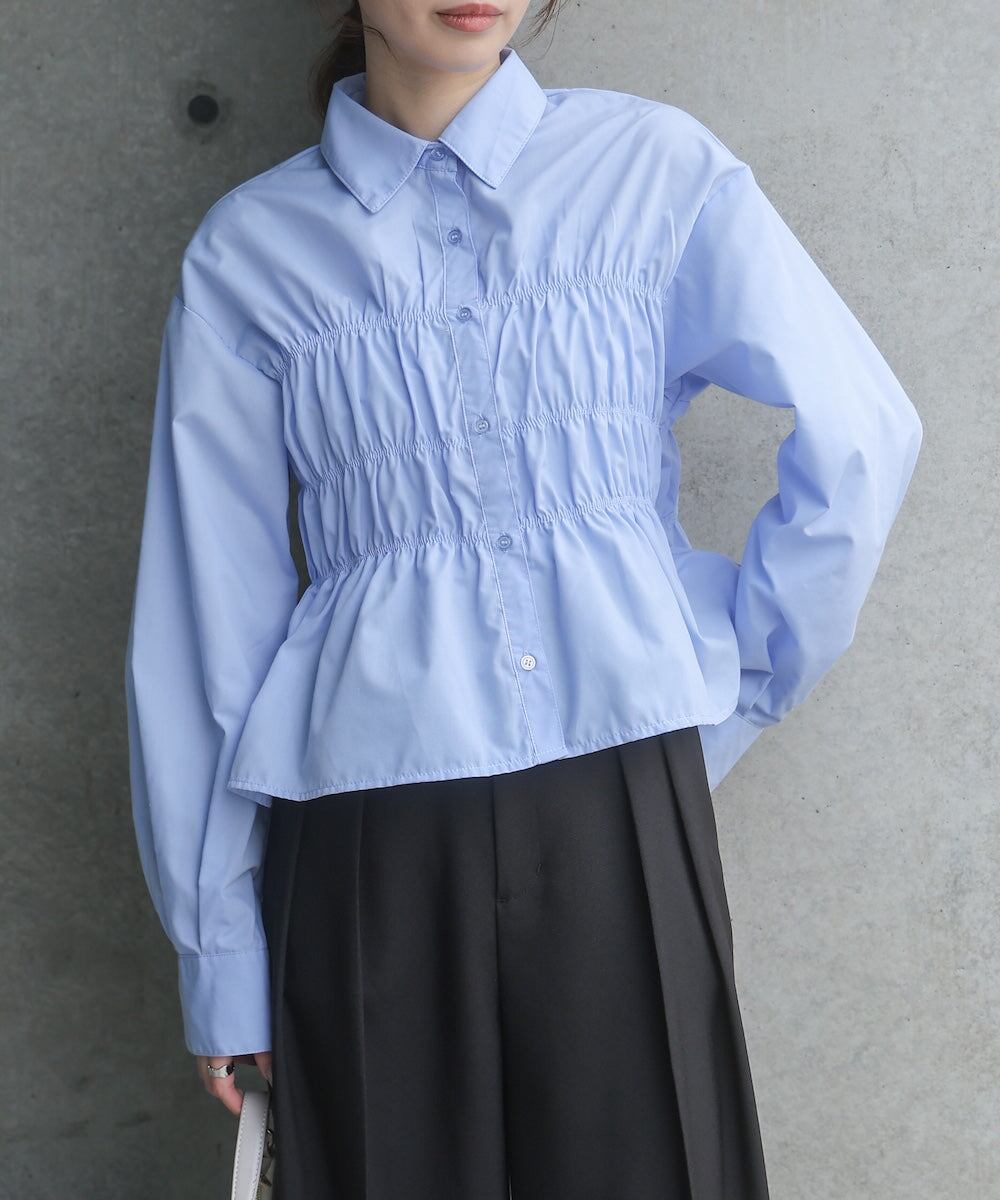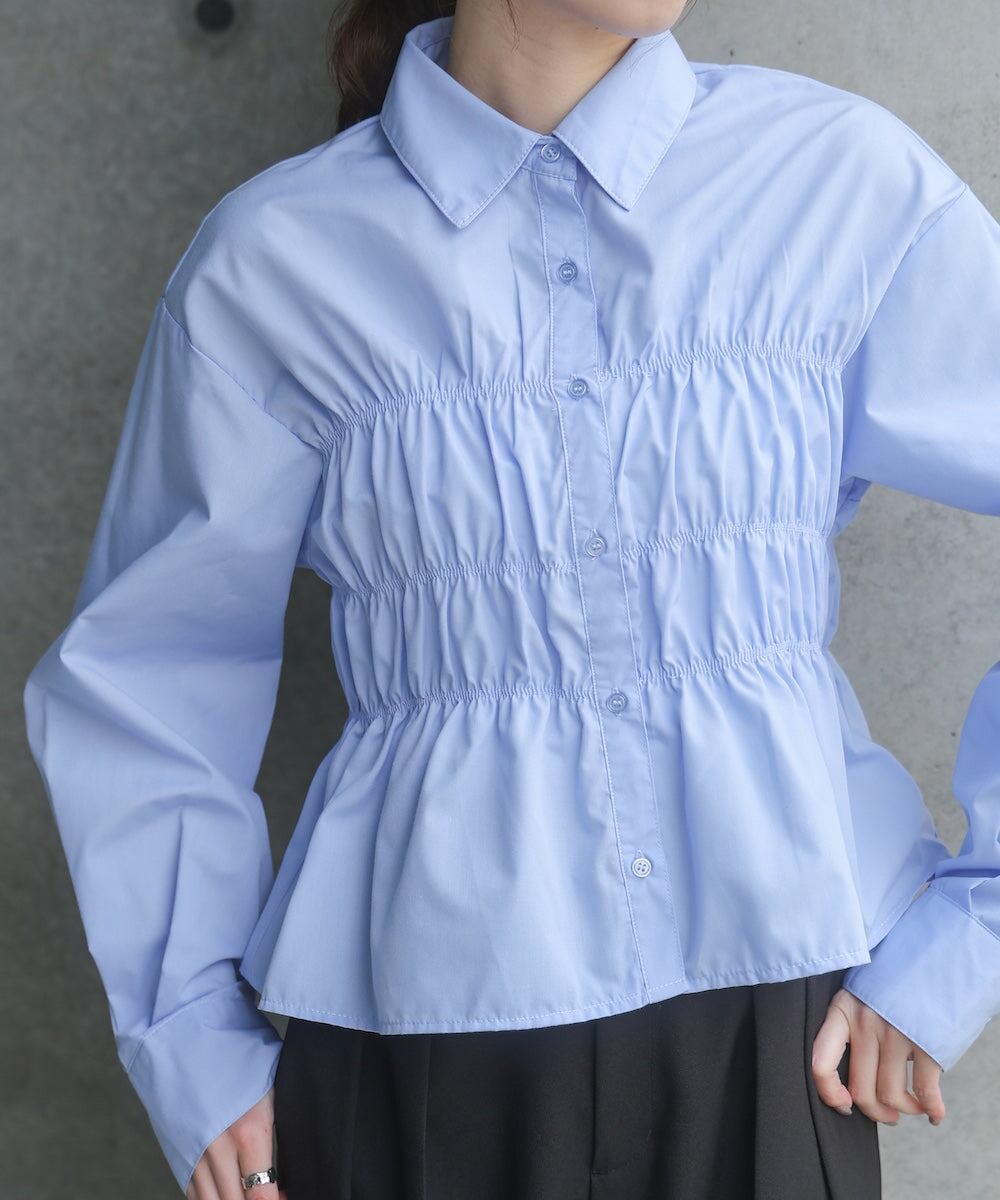 シャーリング ビスチェ風デザインシャツ