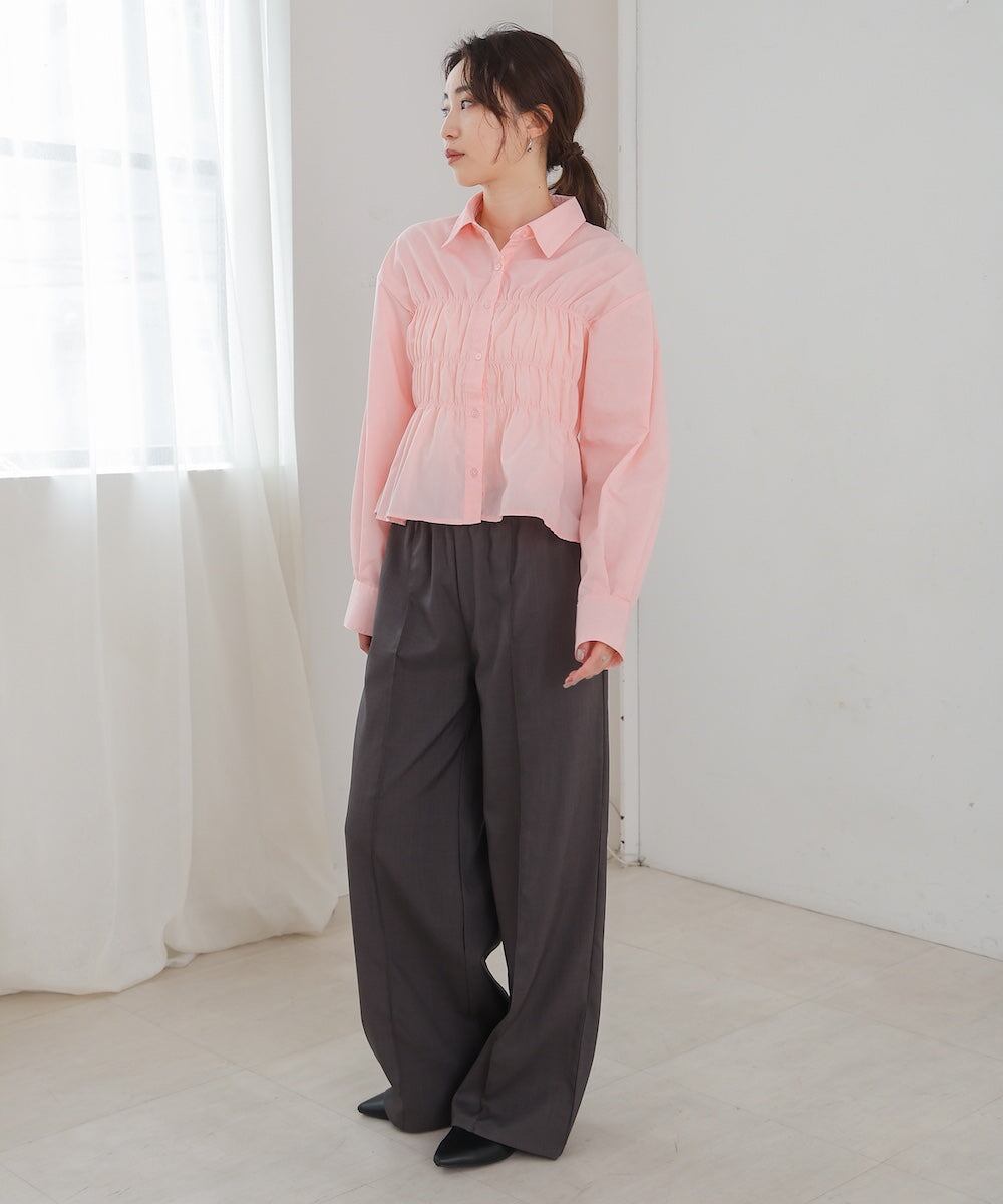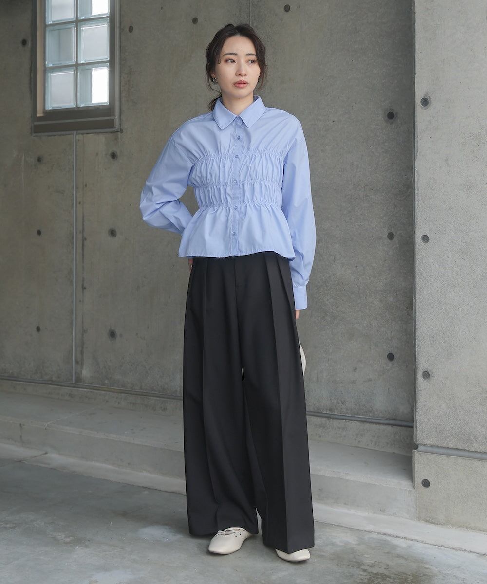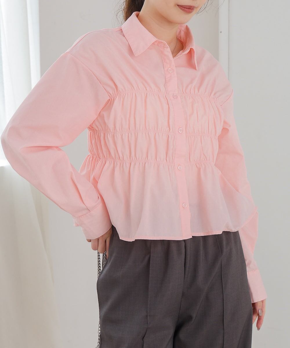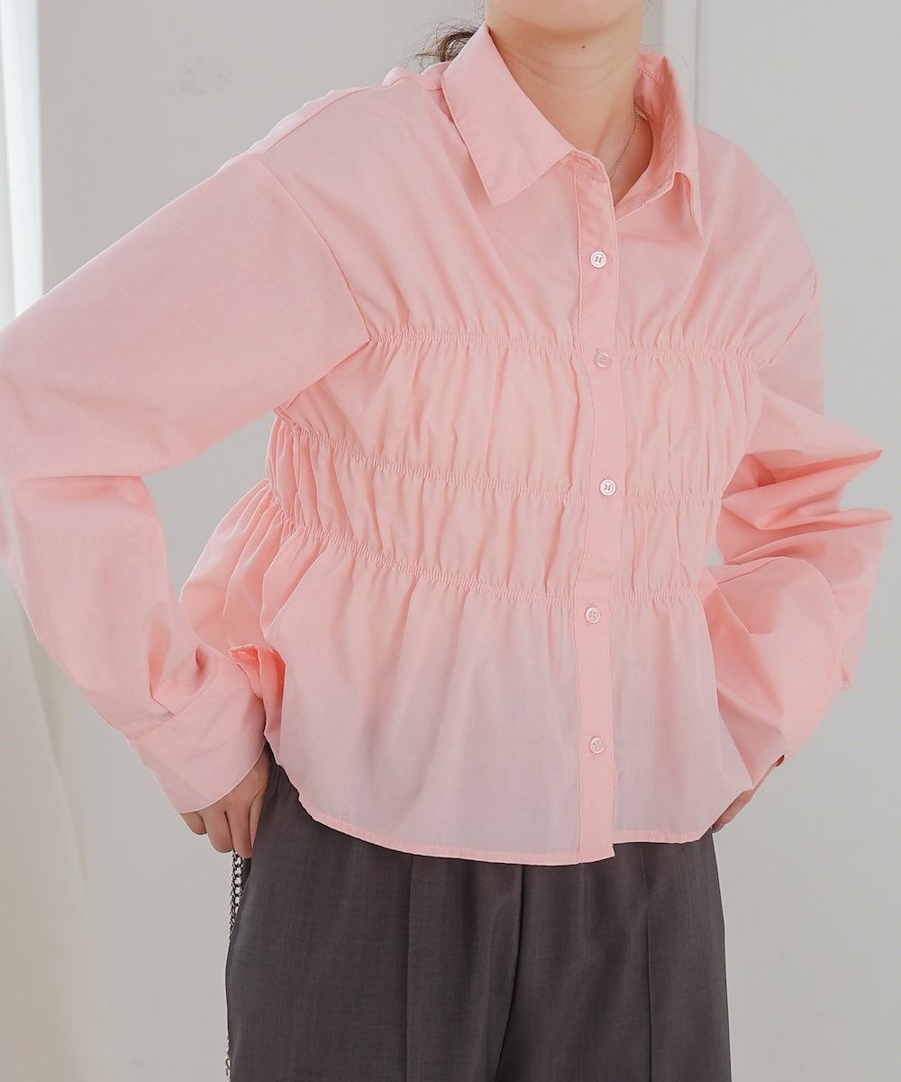 シャーリング ビスチェ風デザインシャツ