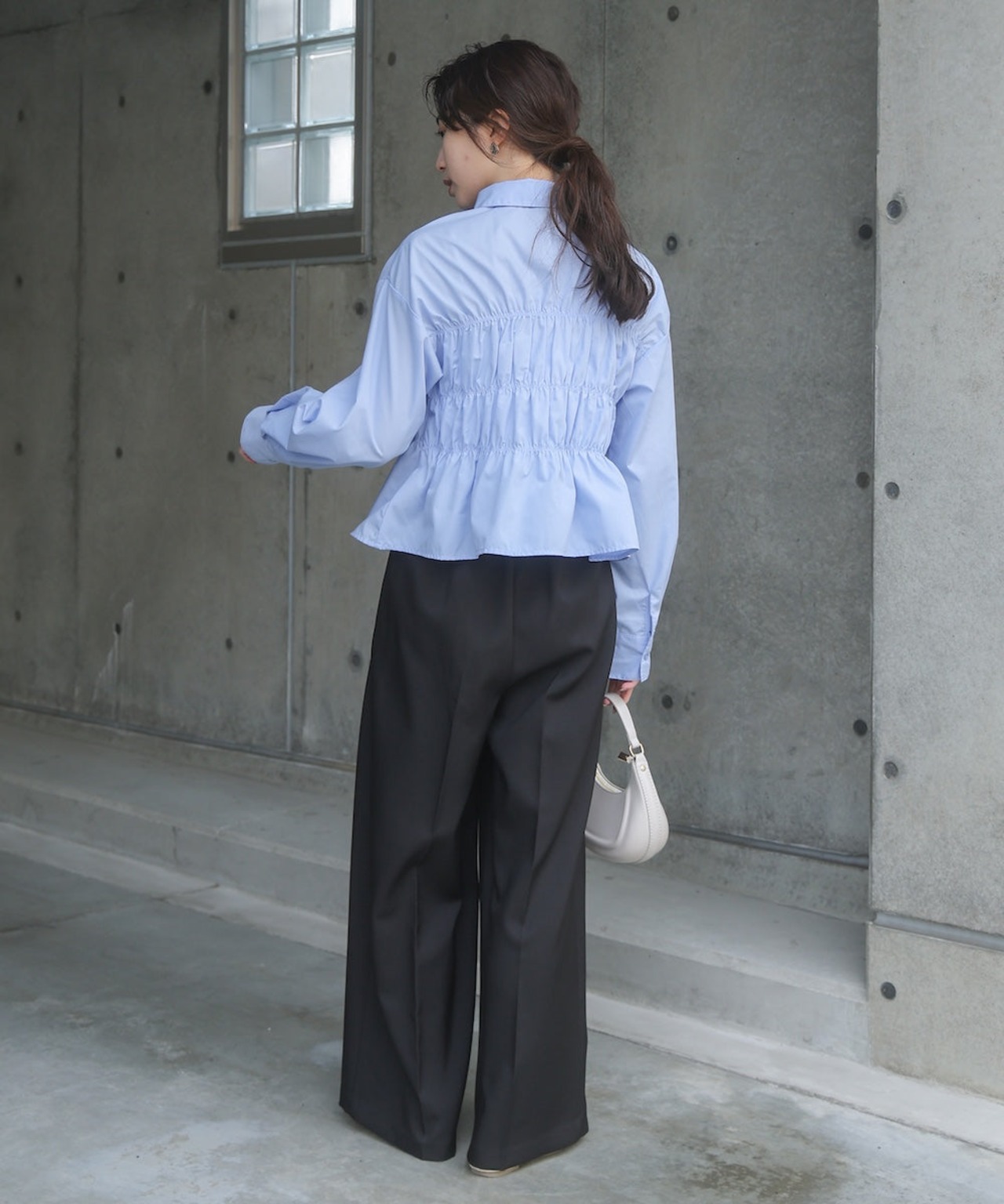 ストンとしたIラインのボトムやデニムで、 カジュアルダウンさせたスタイルもおすすめ〇