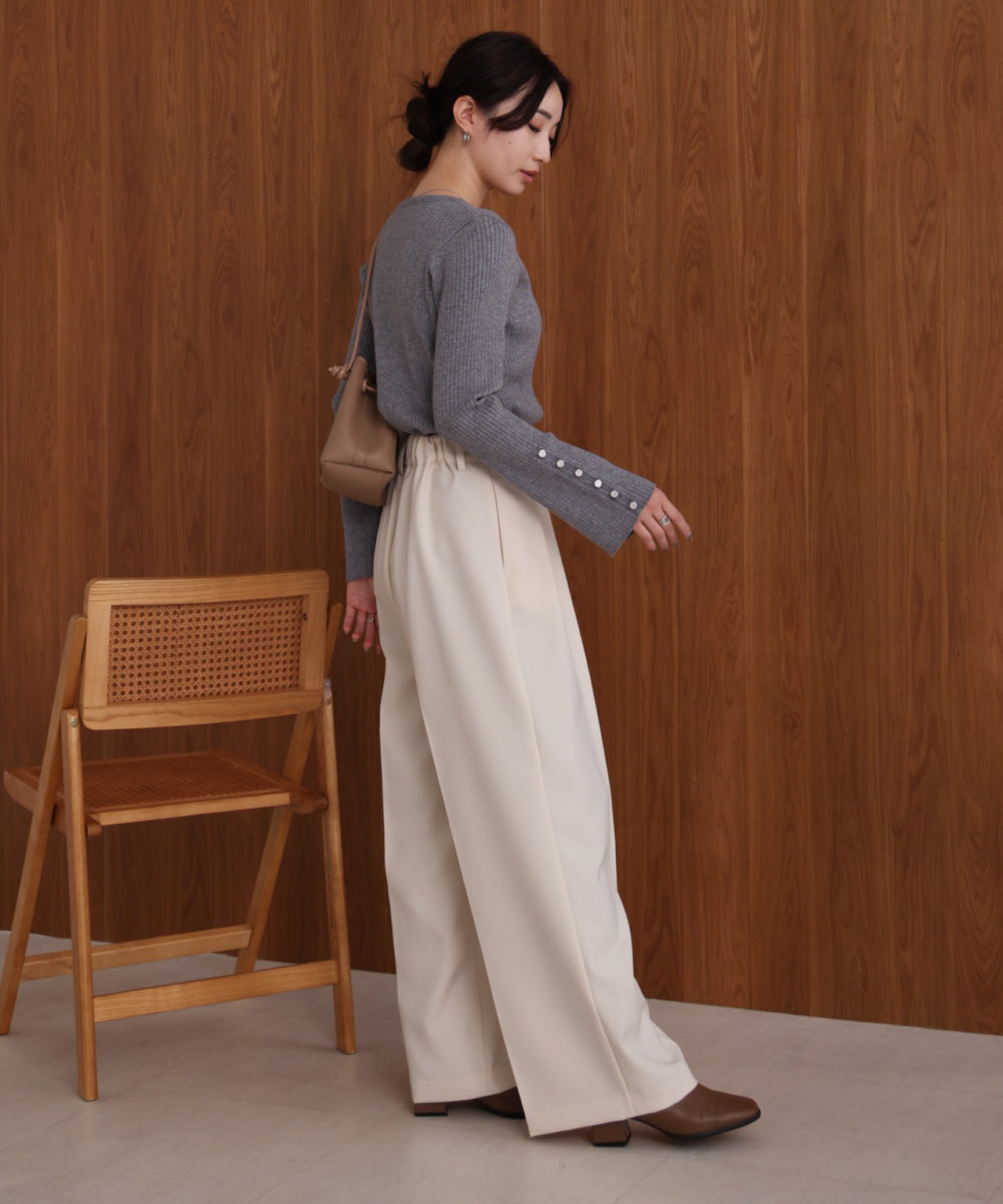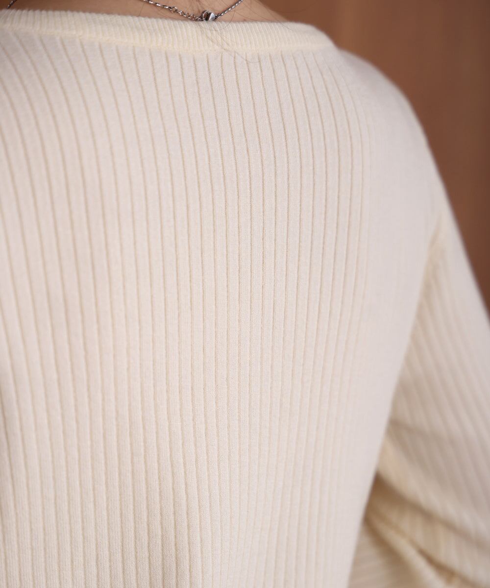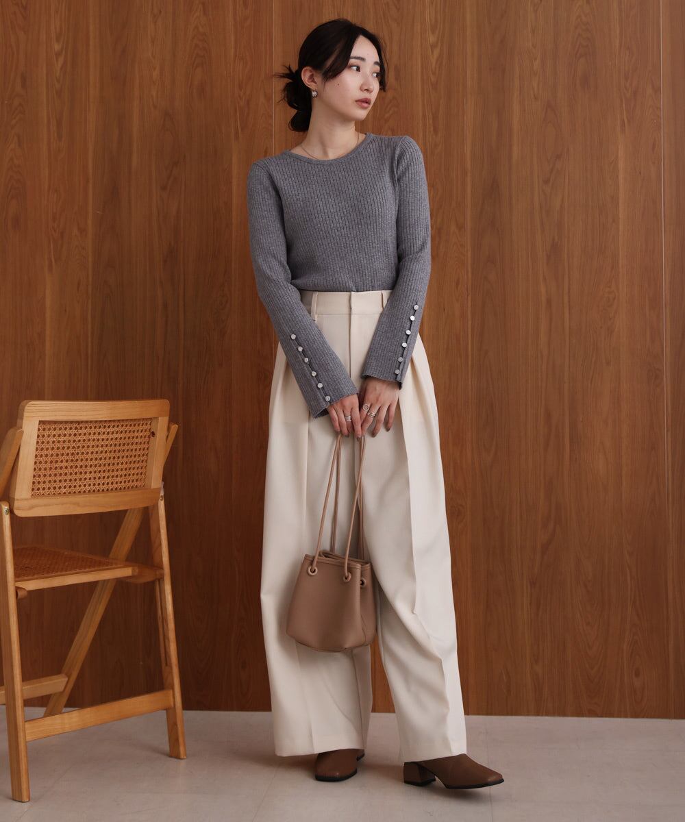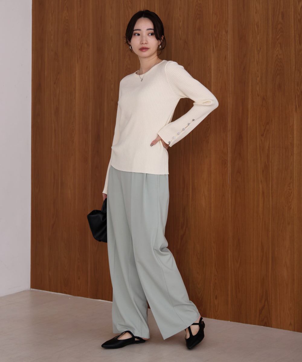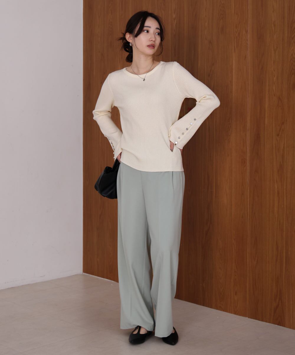 すっきりとしたシルエットのリブニットは、パンツとのワンツーコーデだけでも綺麗なバランスで相性抜群!