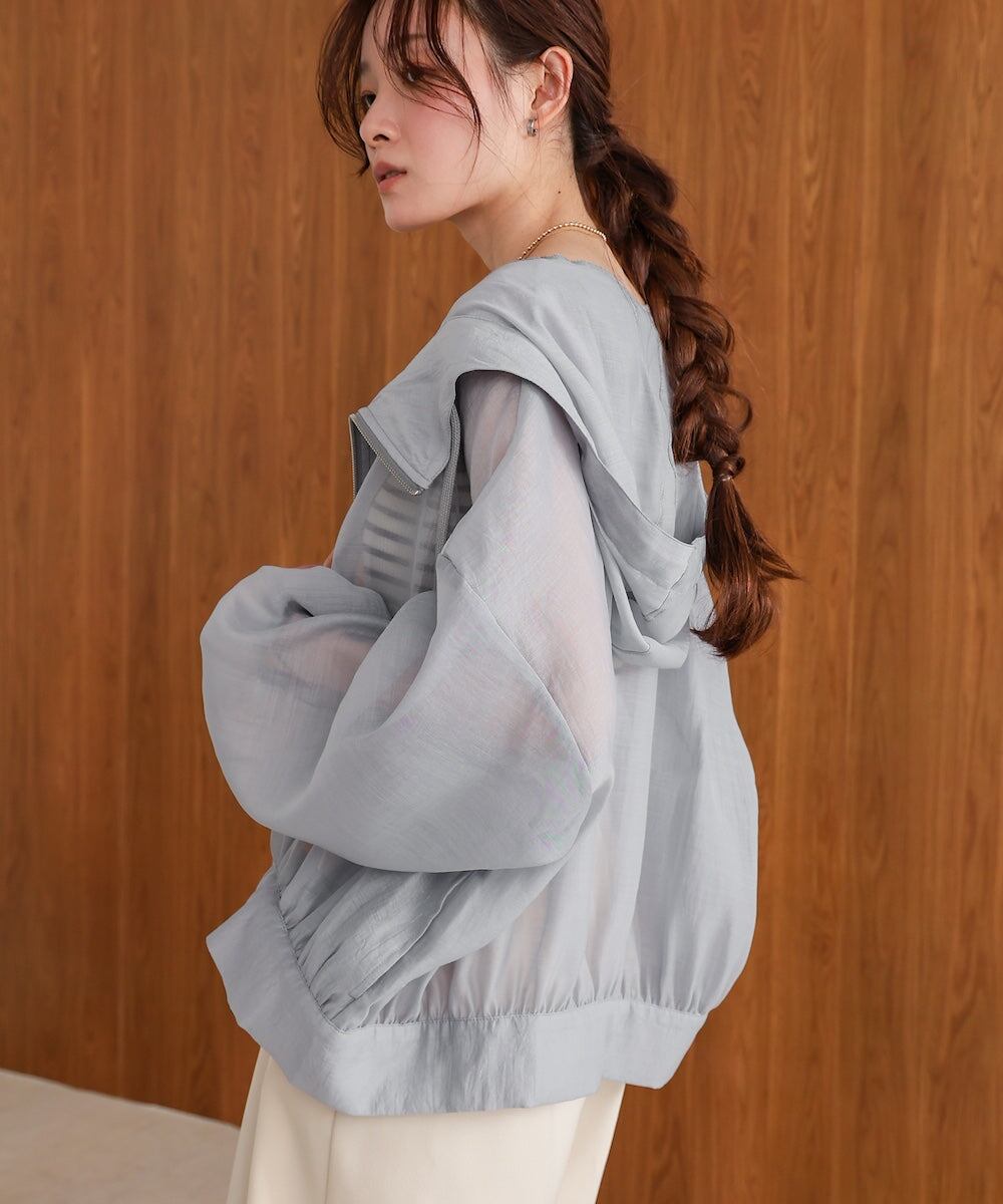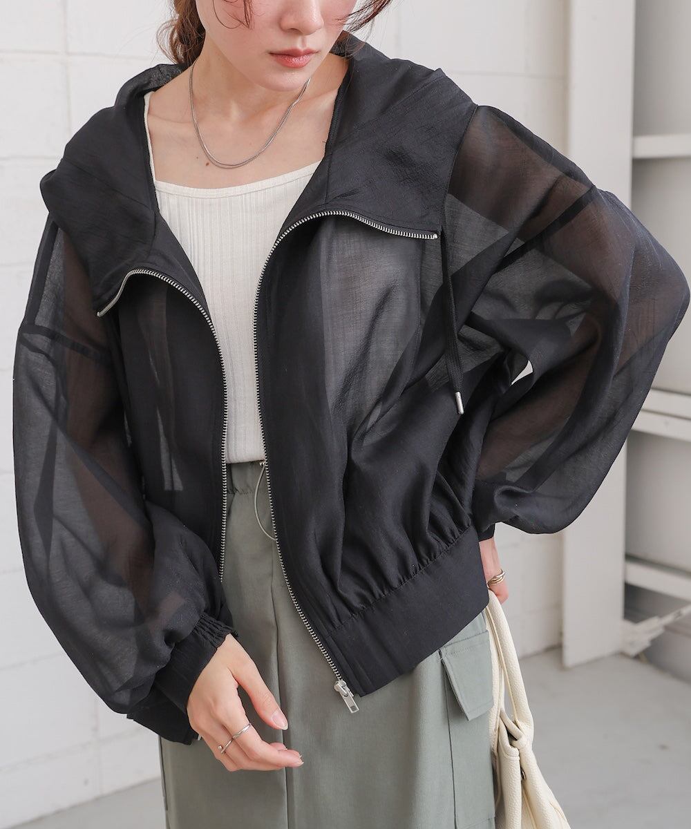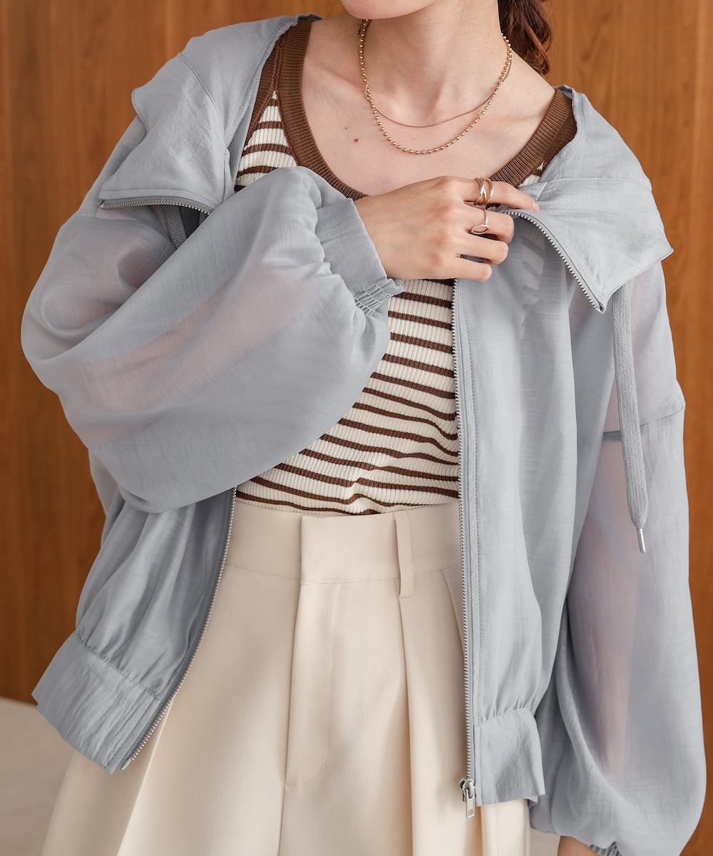 さらっとしたマットな程よい透け感のシアーブルゾンが登場です!ふんわりとしたボリューム袖とゆったりとしたリラックスシルエットが、中に着る物も問わずに着用いただけます。これからの季節?秋まで活躍すること間違いなしのブルゾンです。