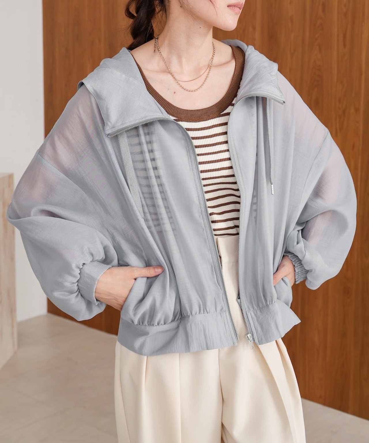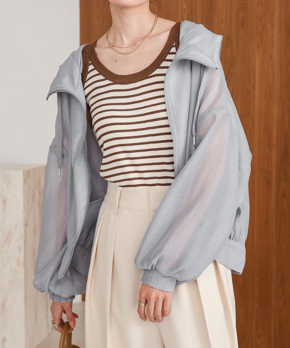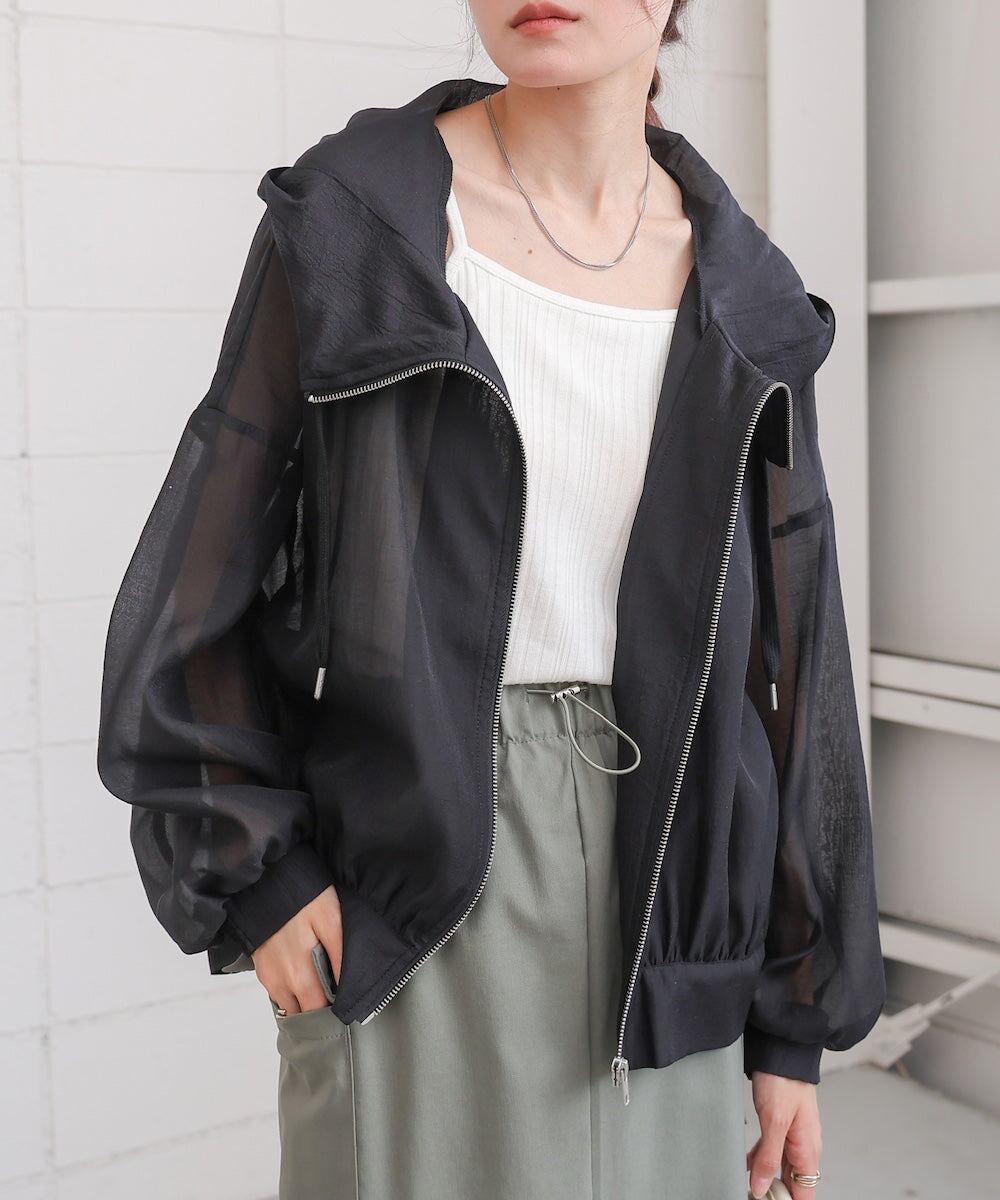 さらっとしたマットな程よい透け感のシアーブルゾンが登場です!ふんわりとしたボリューム袖とゆったりとしたリラックスシルエットが、中に着る物も問わずに着用いただけます。これからの季節?秋まで活躍すること間違いなしのブルゾンです。