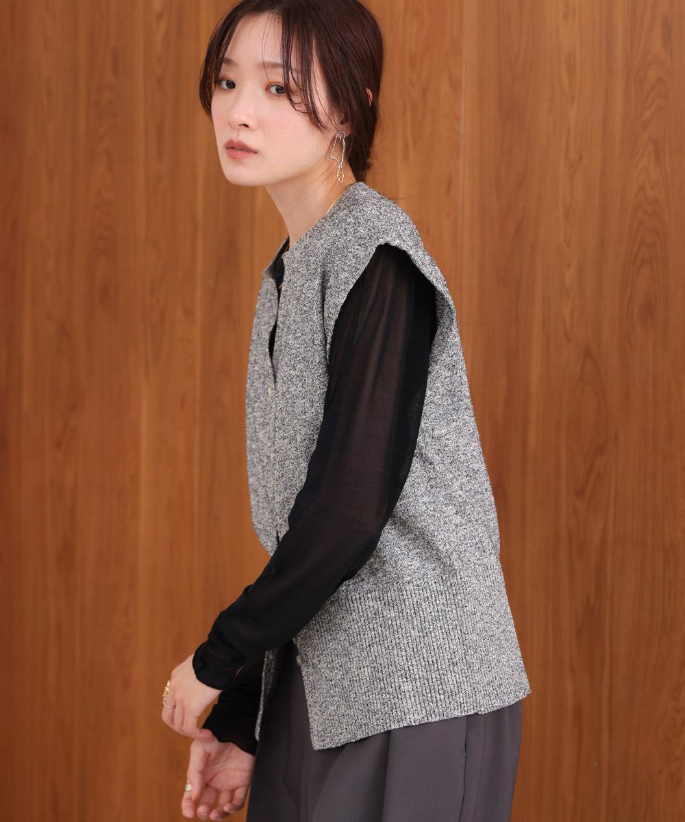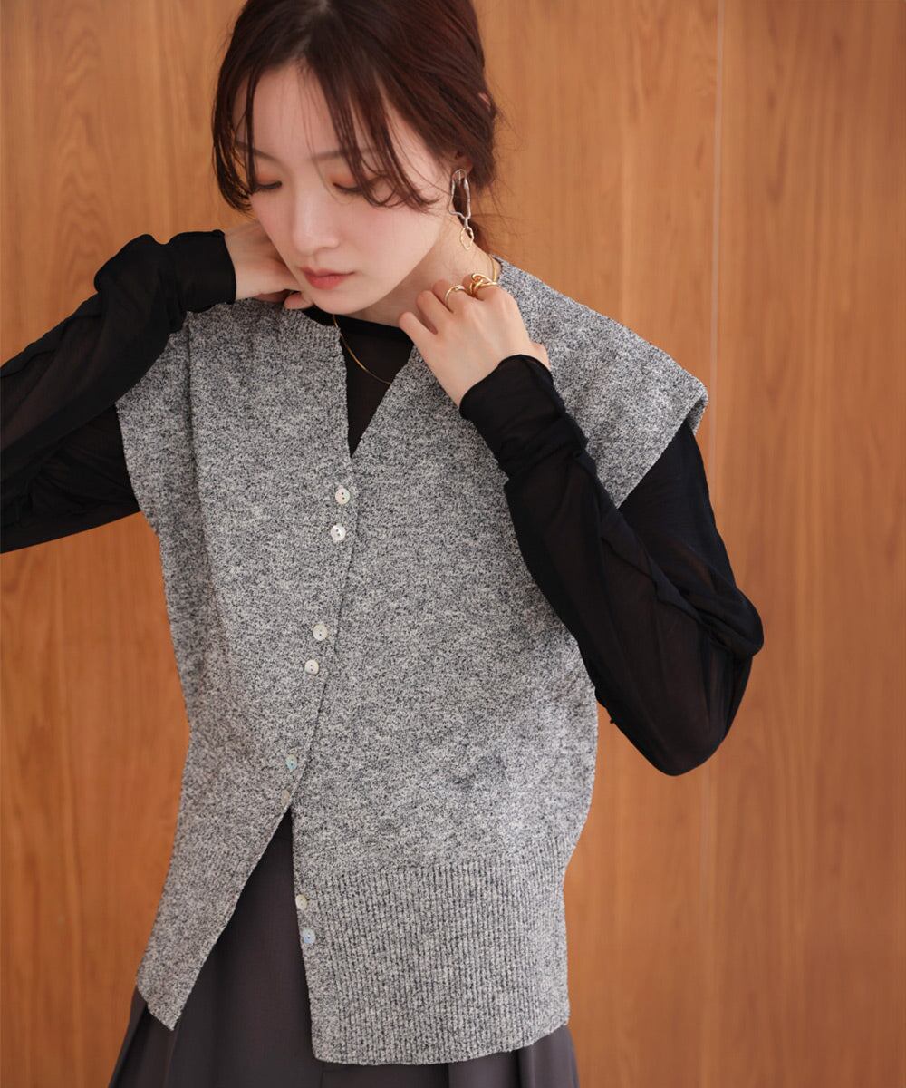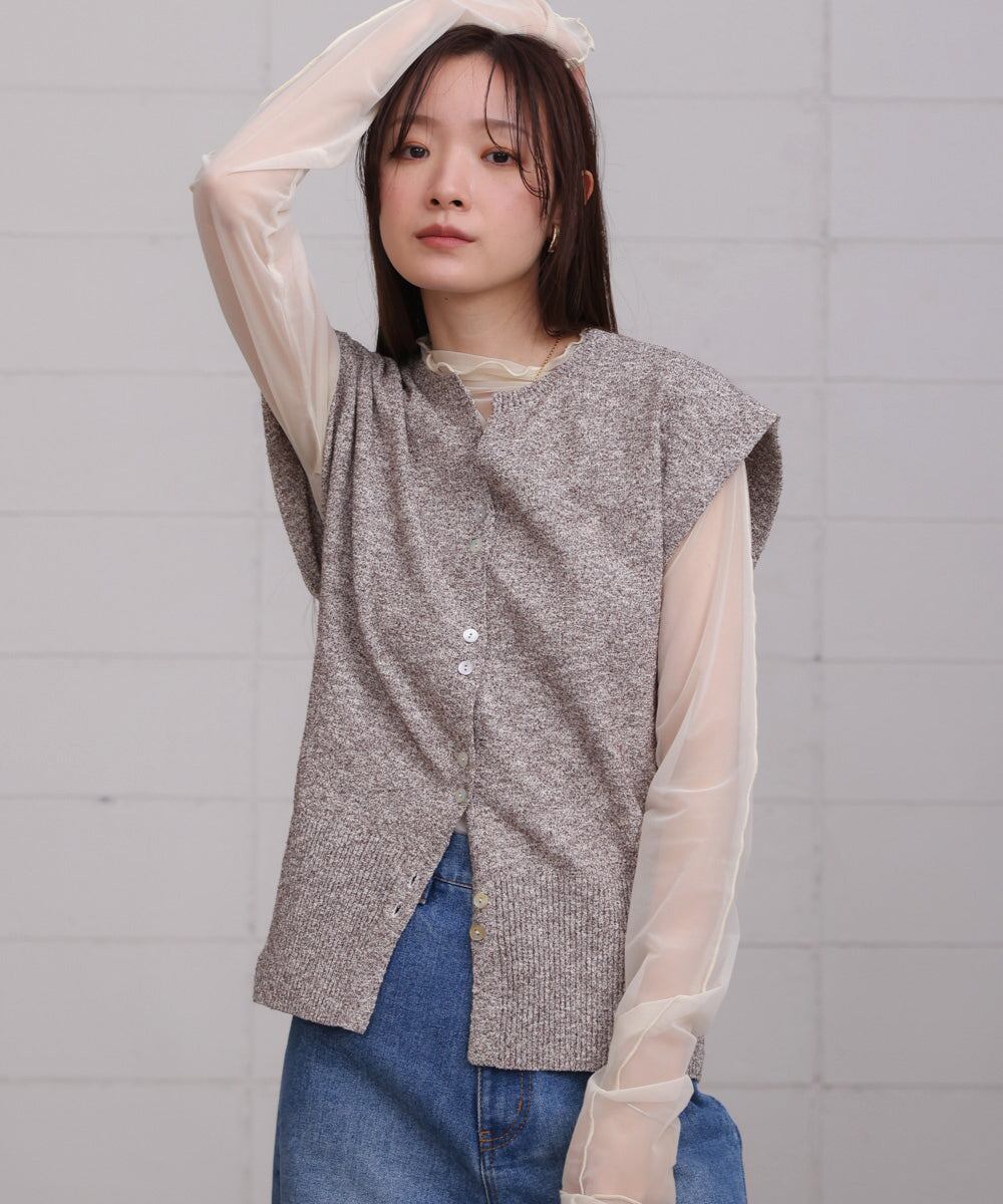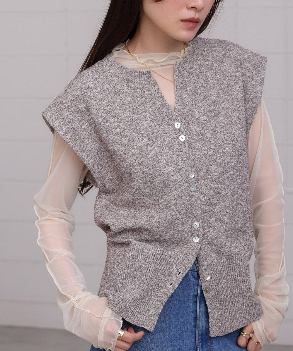 フレンチスリーブとキーネックで大人の抜け感を演出するライトなニットベスト!