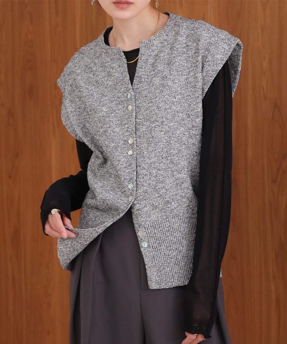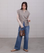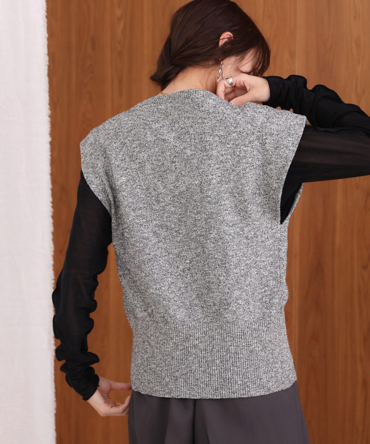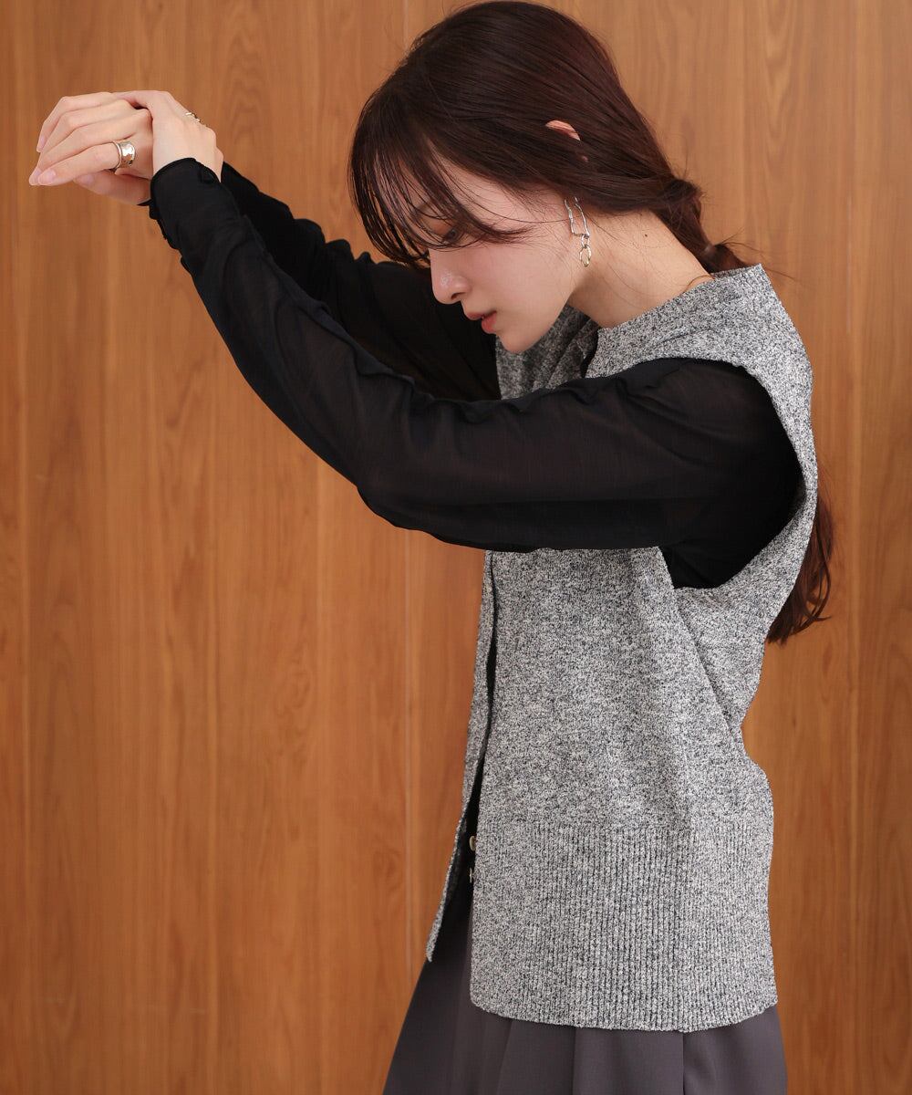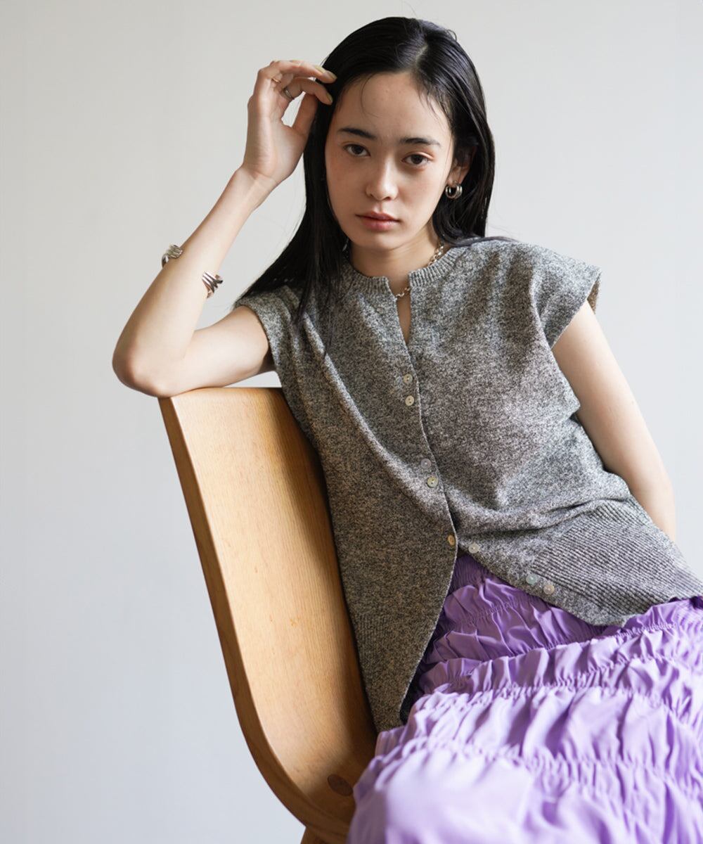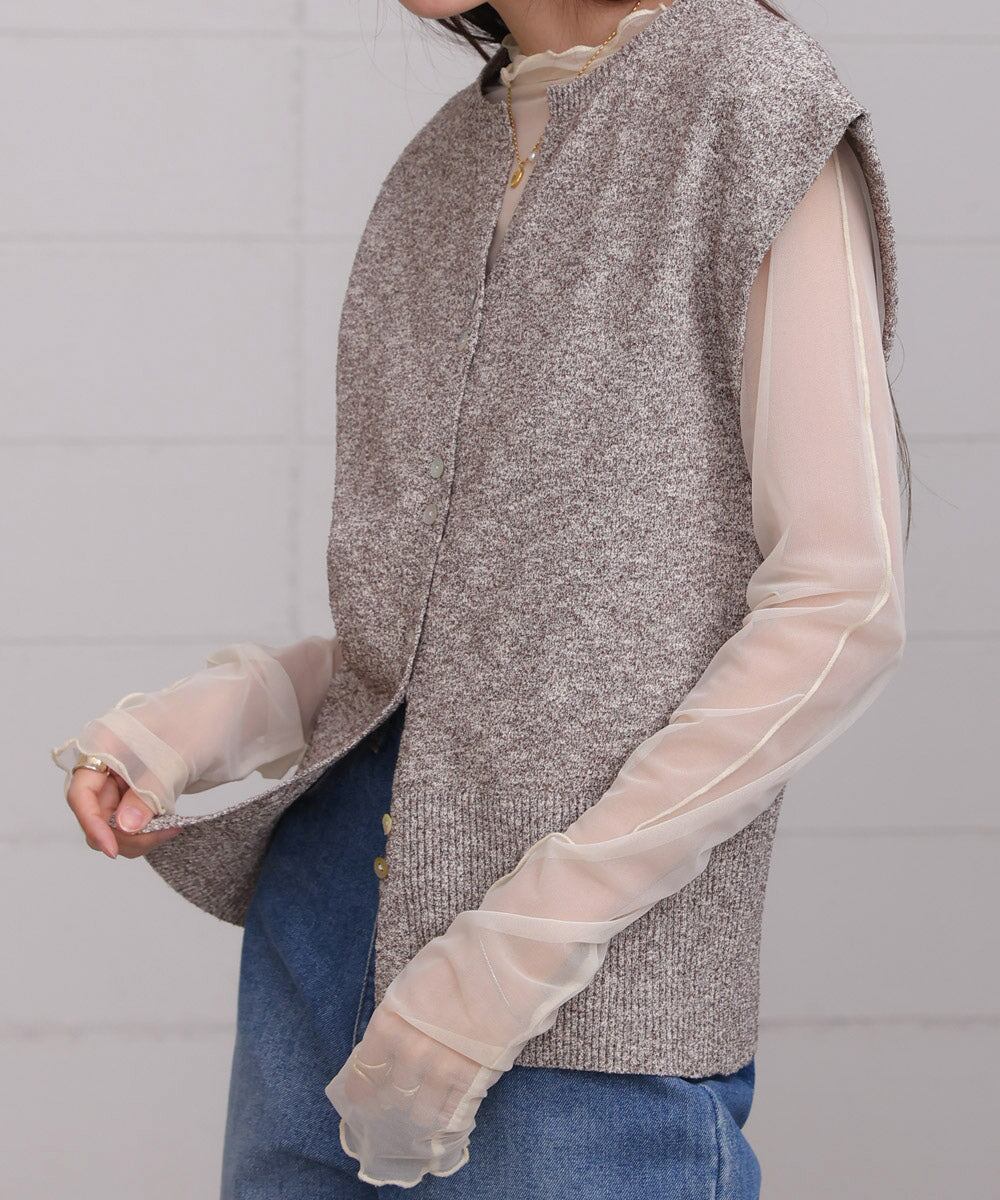 フレンチスリーブとキーネックで大人の抜け感を演出するライトなニットベスト!