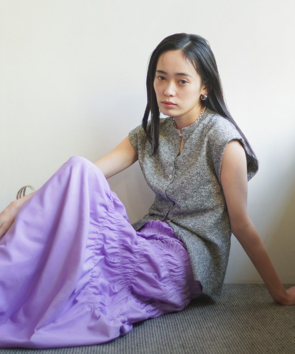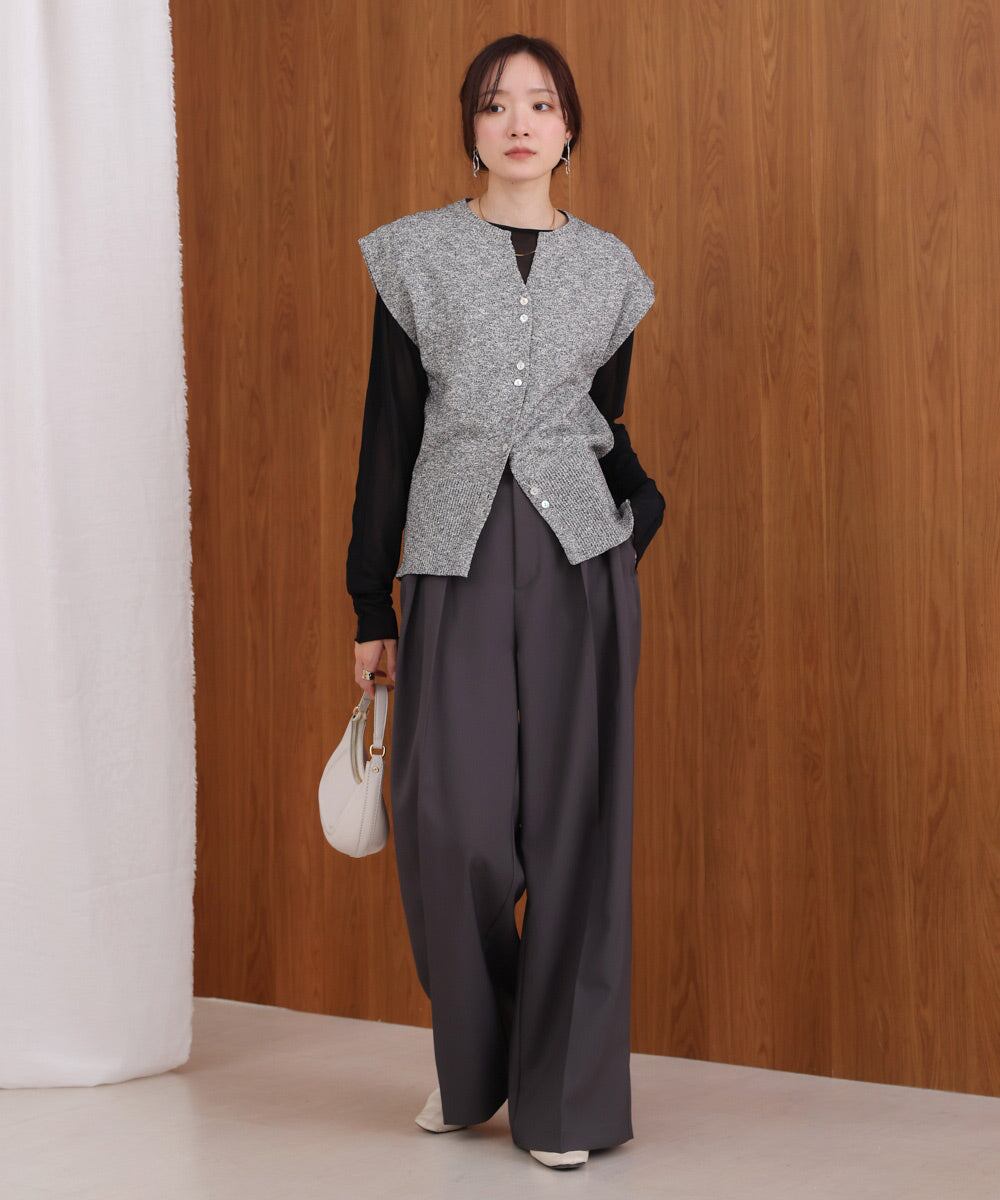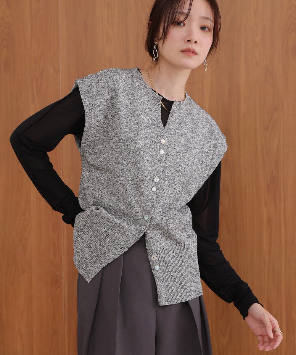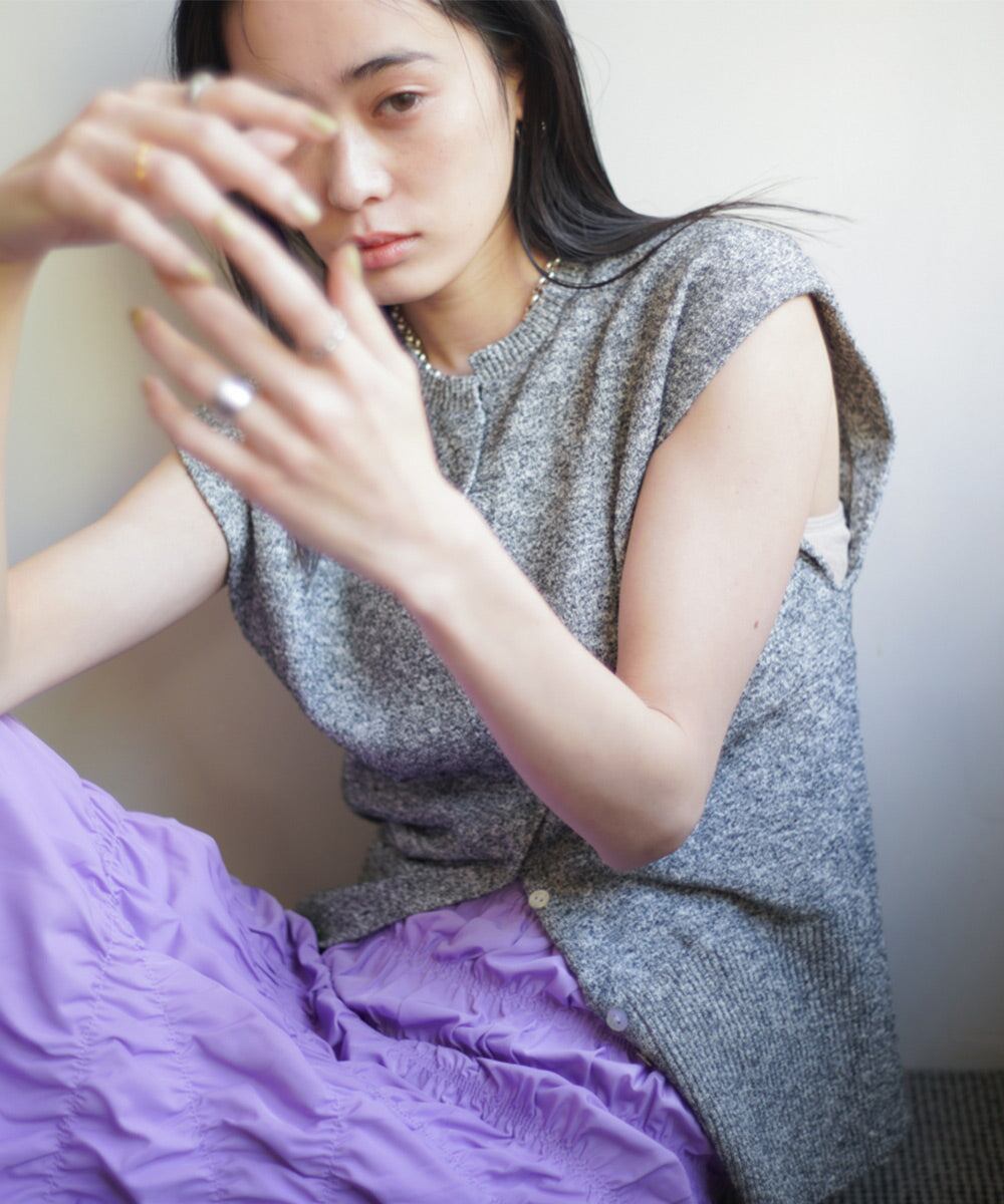 フレンチスリーブとキーネックで大人の抜け感を演出するライトなニットベスト!