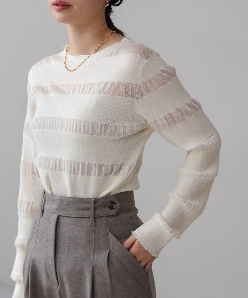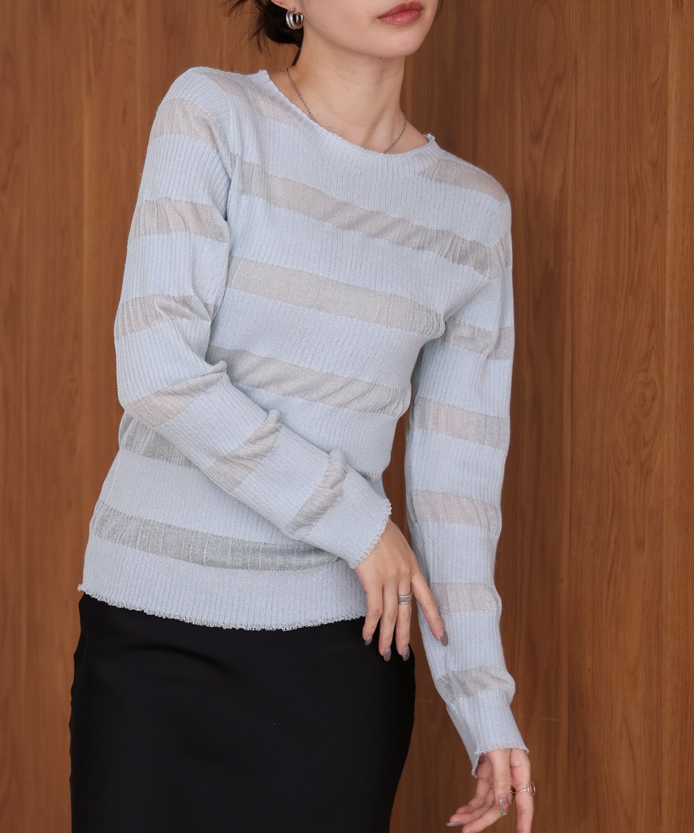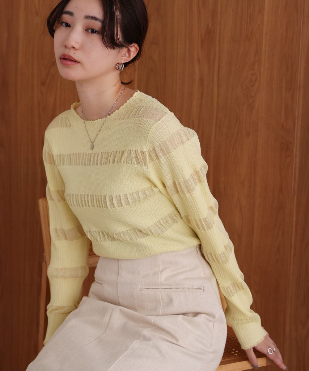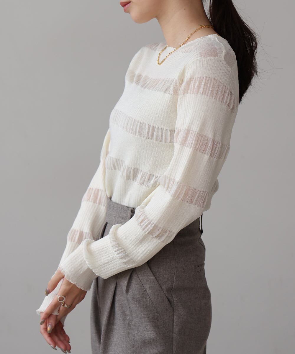 シアーボーダーが抜け感を演出する軽やかなニットトップス!