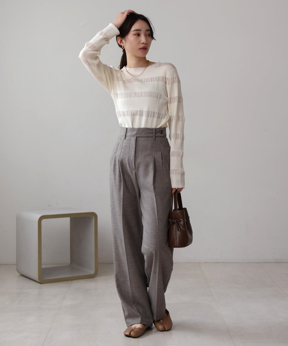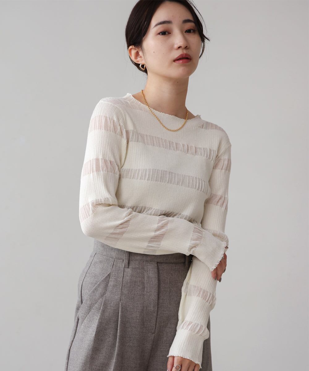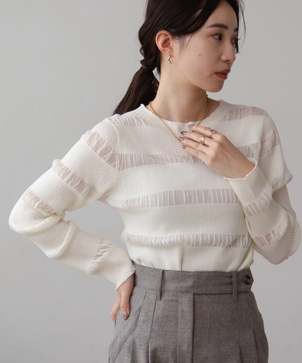 シアーボーダーが抜け感を演出する軽やかなニットトップス!