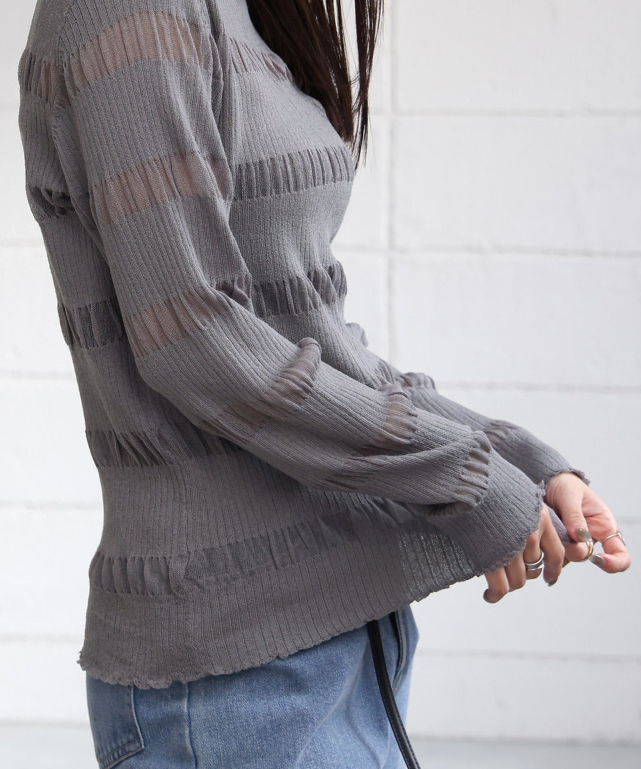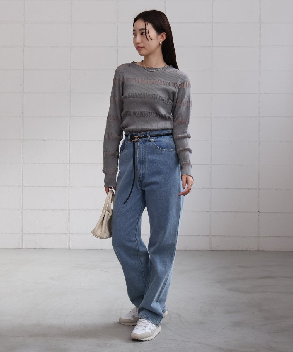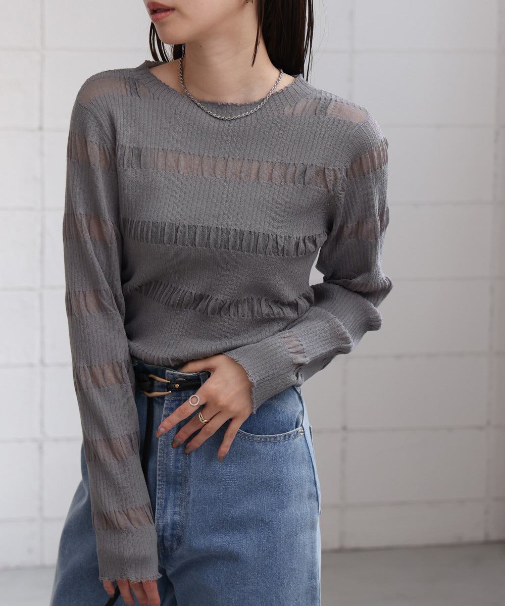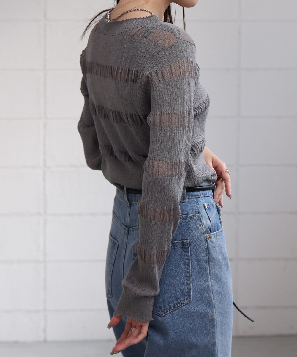 シアーボーダーが抜け感を演出する軽やかなニットトップス!