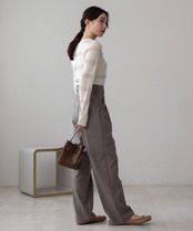 センタープレスパンツできちんとオフィスカジュアルや、ツヤなサテンスカートでちょっとしたお出掛けに。