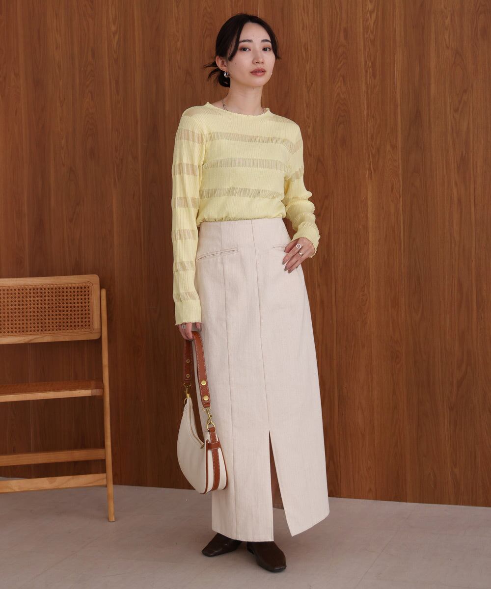 布帛のナロースカートと合わせれば、春らしいムード満載なコーディネートが完成します。