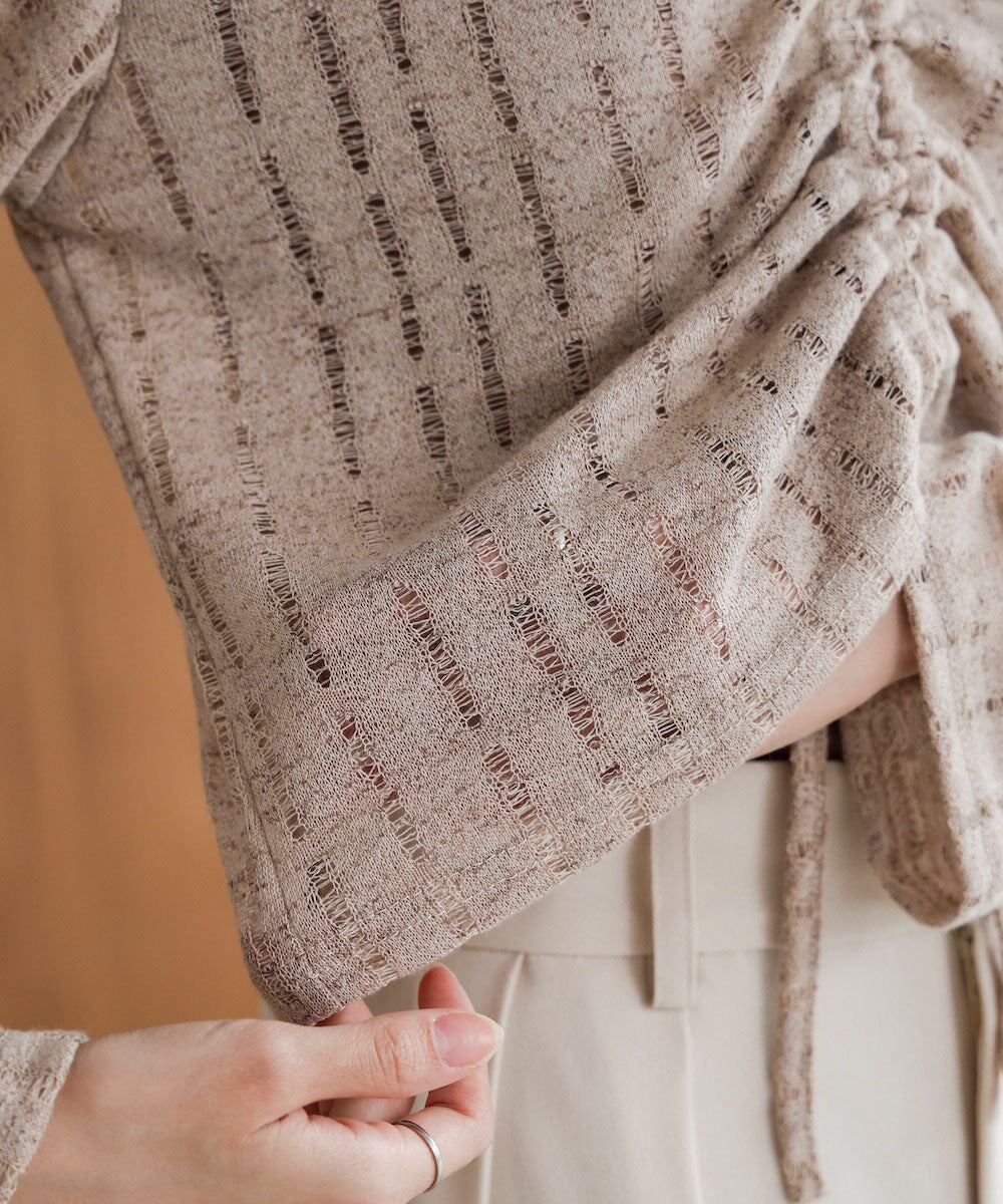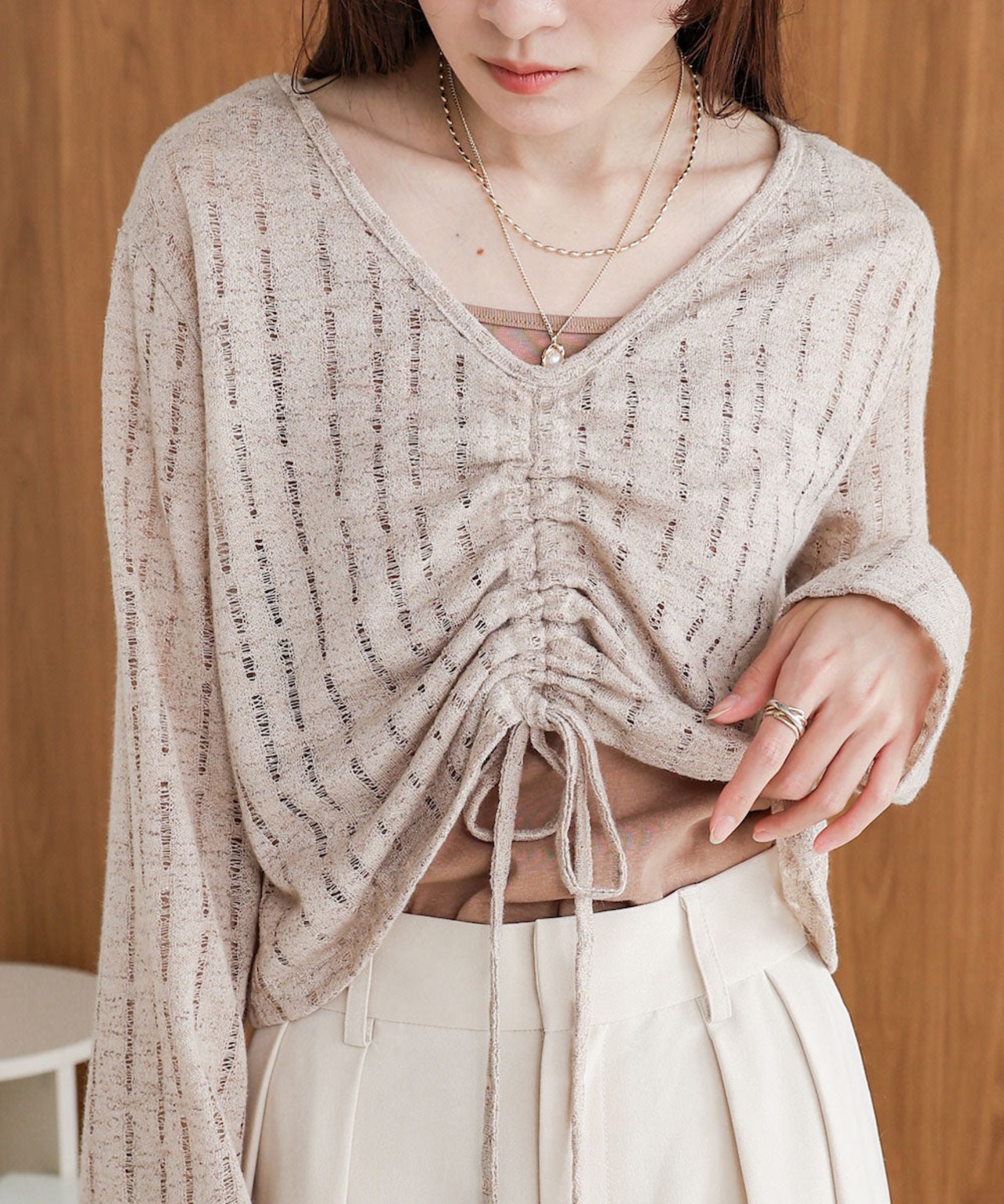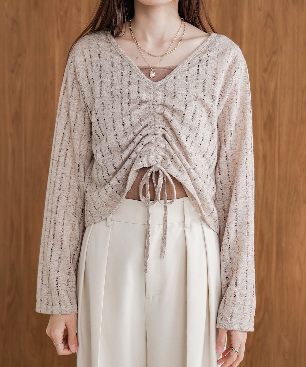 程よい透かし編みとフロントのシャーリングがアクセントになったトレンド感のあるトップスが仲間入り。
