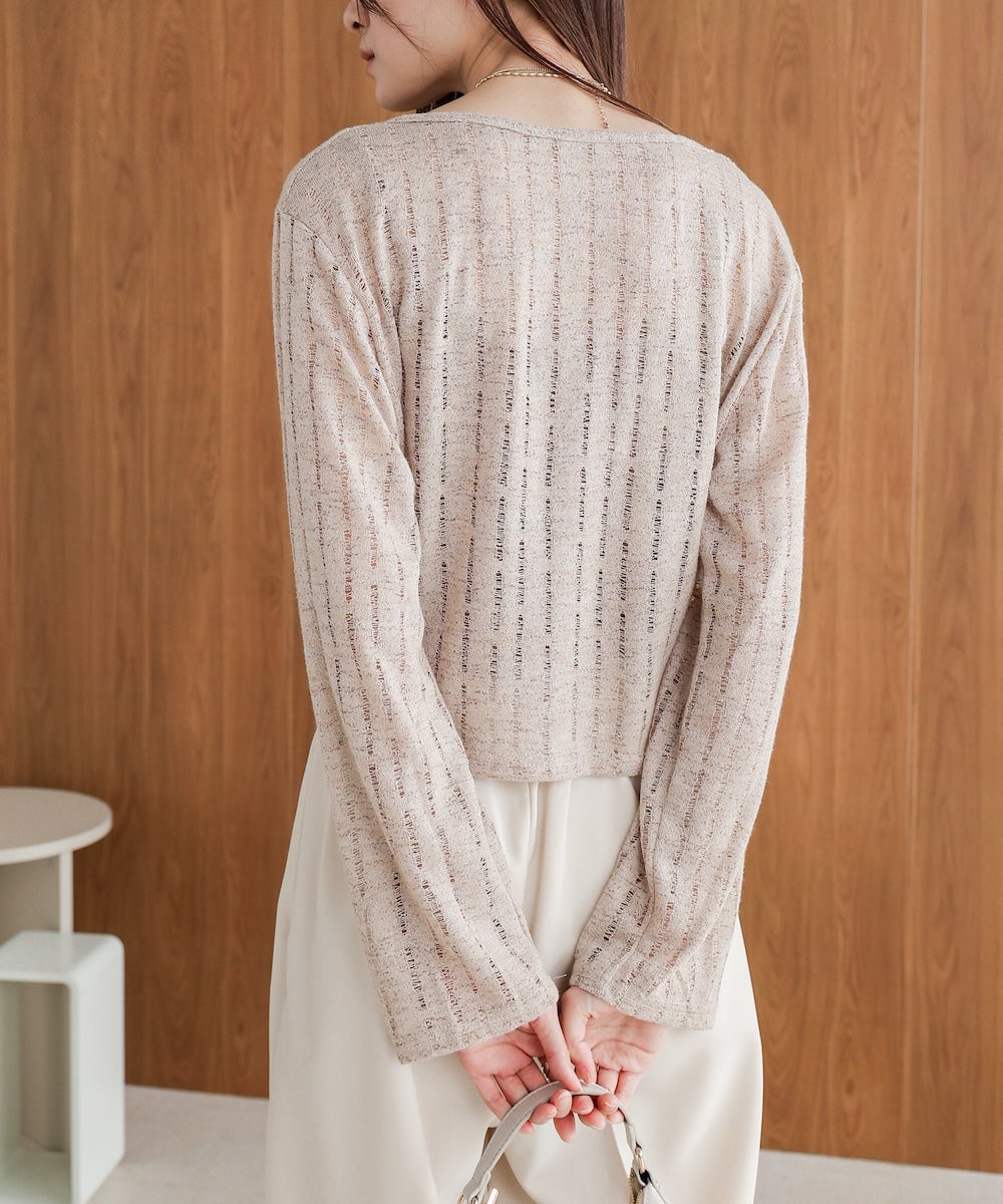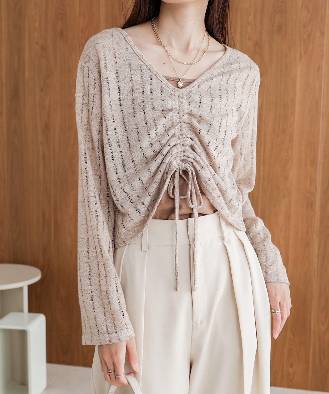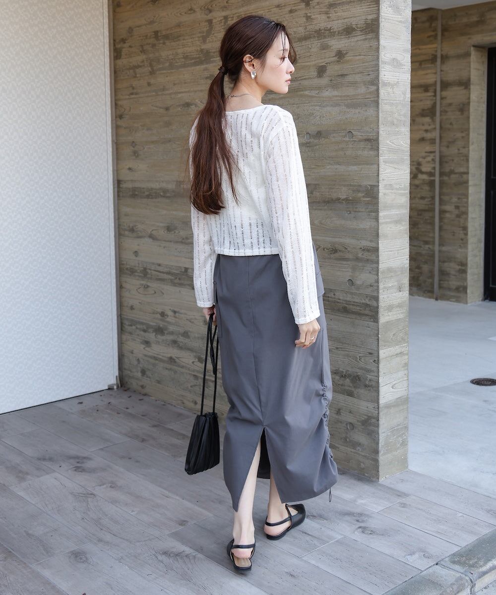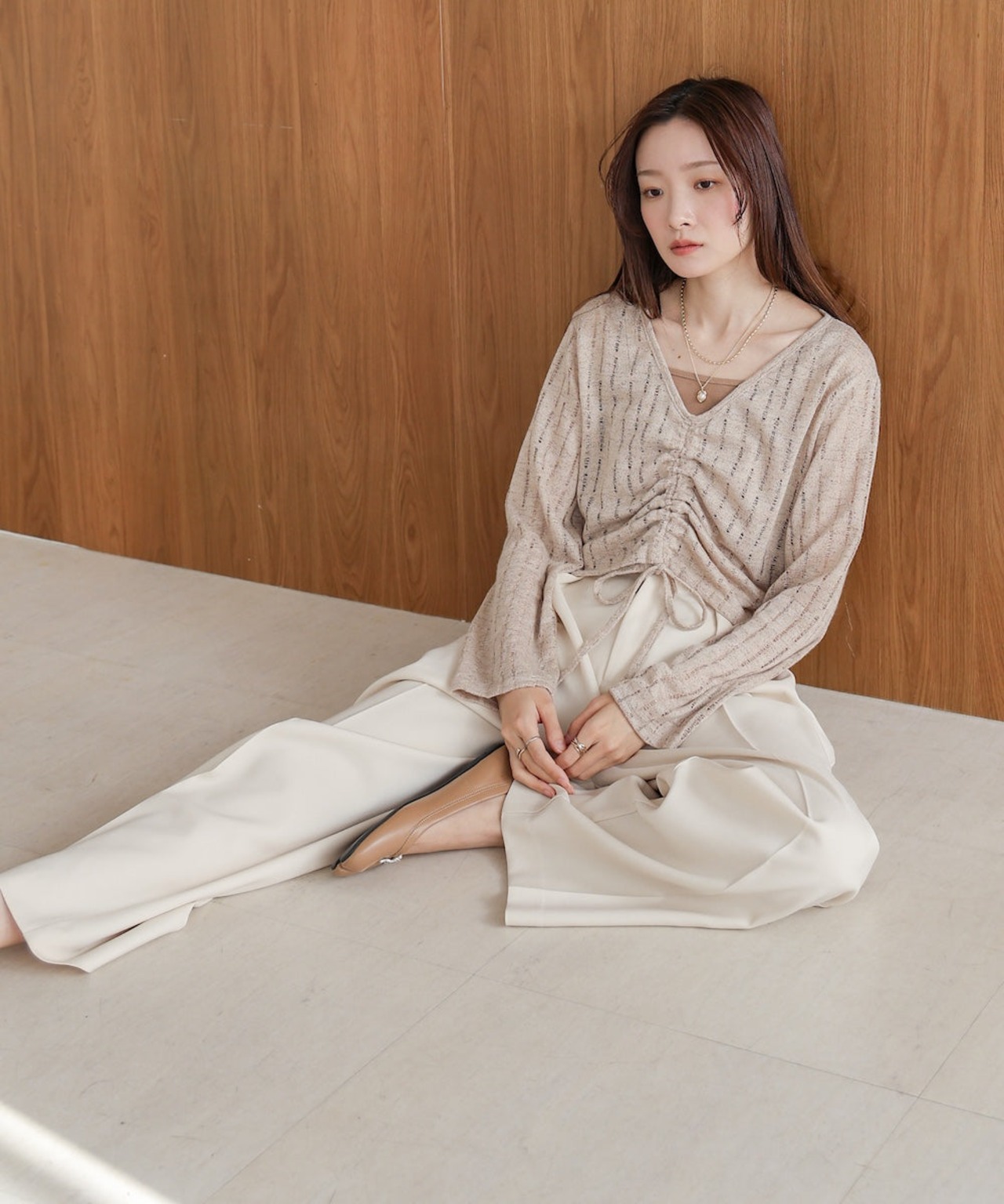 程よい透かし編みとフロントのシャーリングがアクセントになったトレンド感のあるトップスが仲間入り。