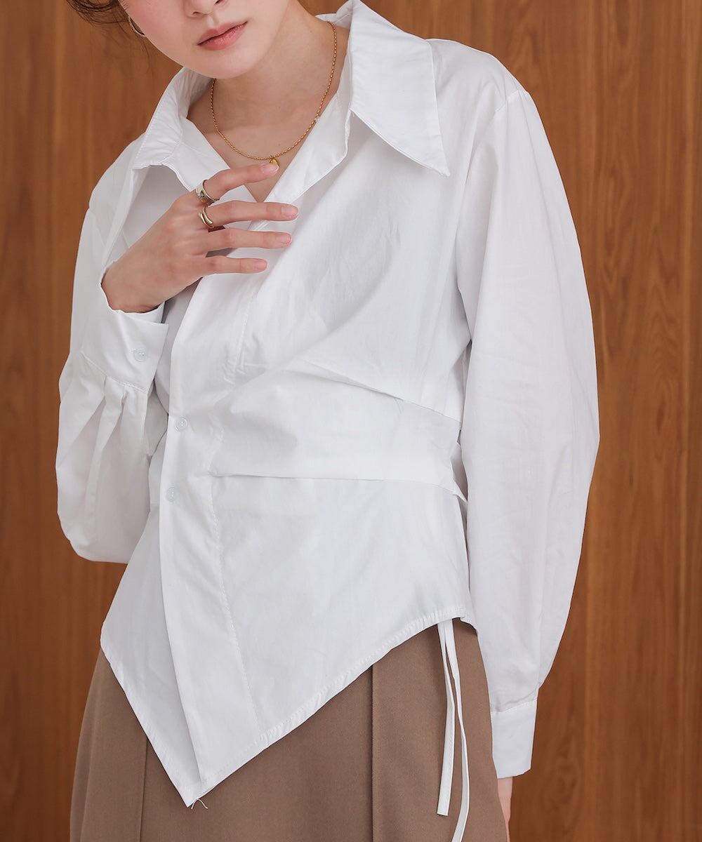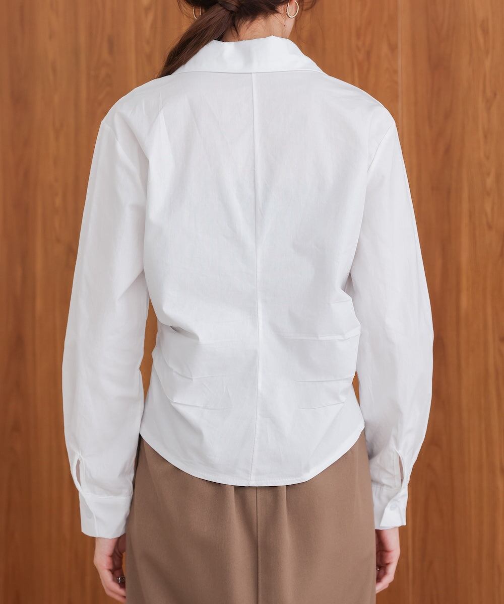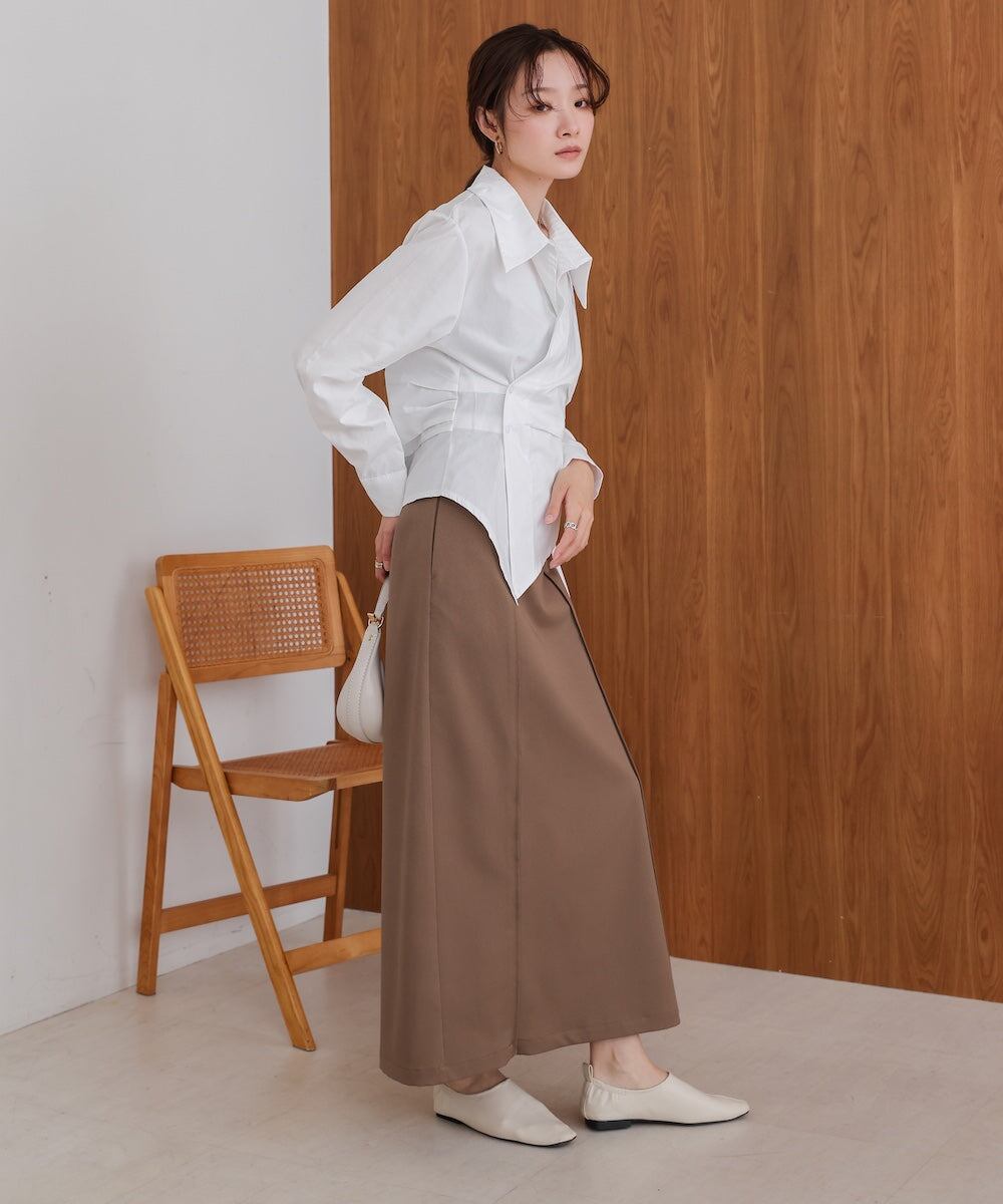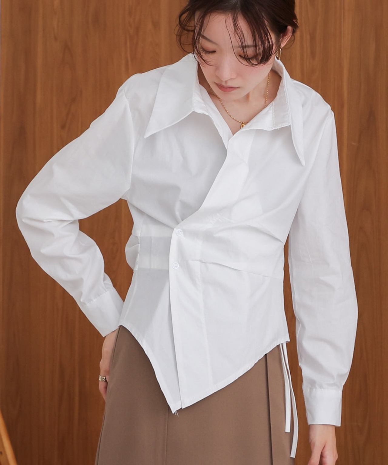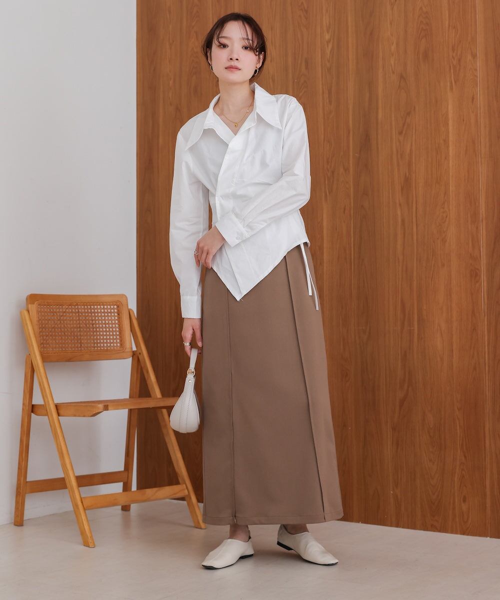 シャープなイレギュラーヘムも着こなしのアクセントになり、1枚だけで女性らしい着映えを叶えてくれる1着になりました。