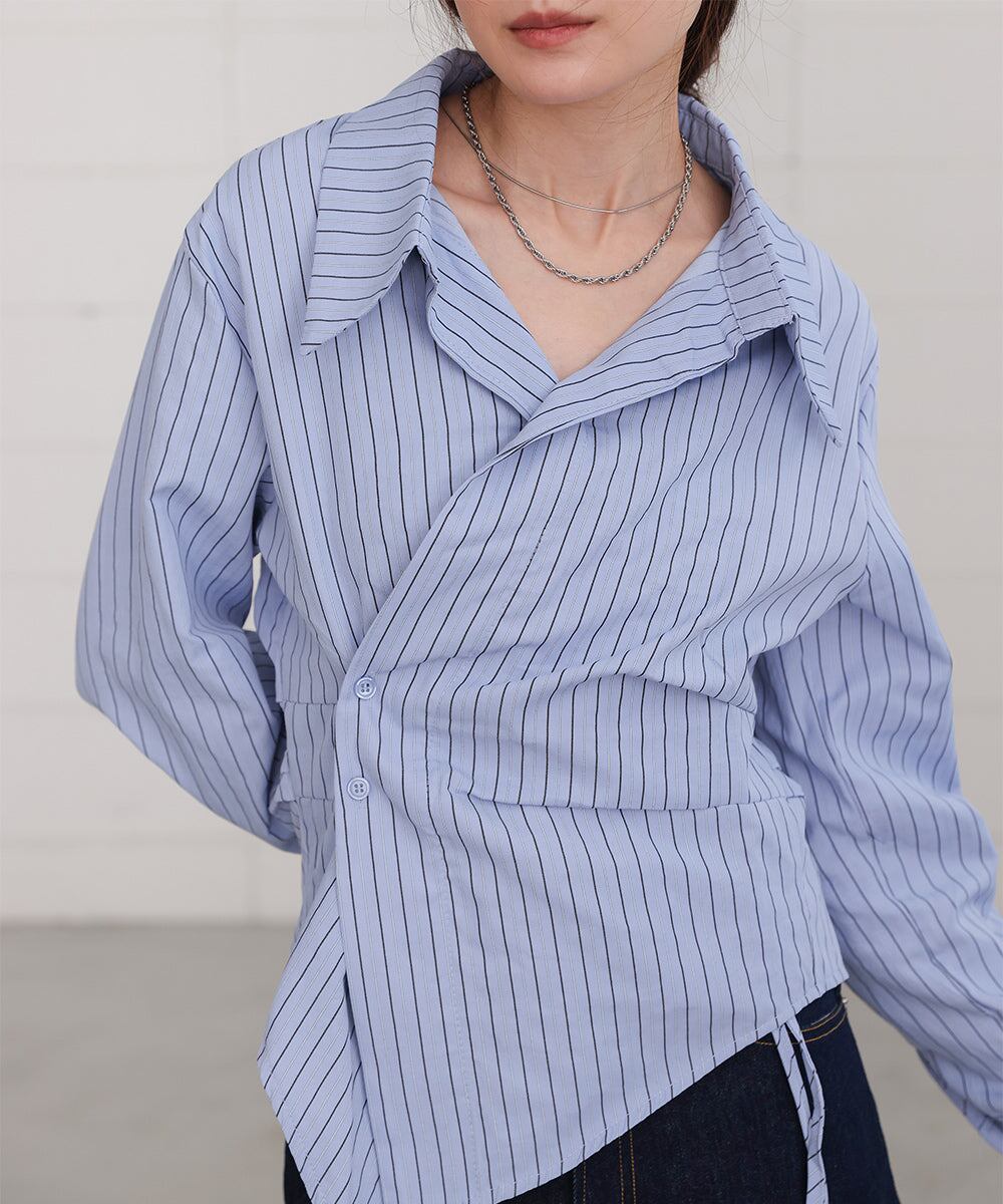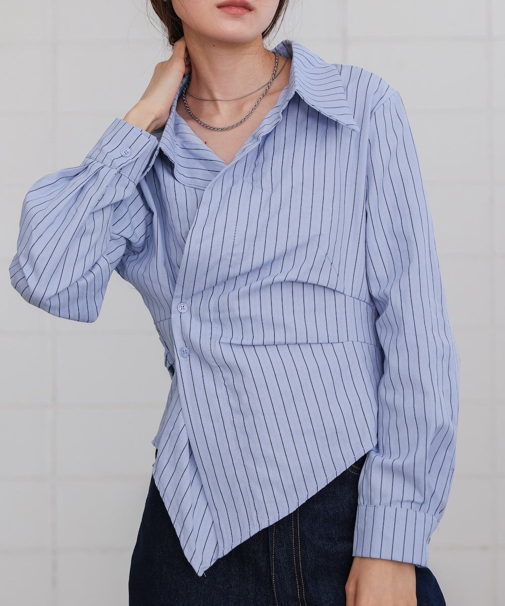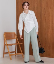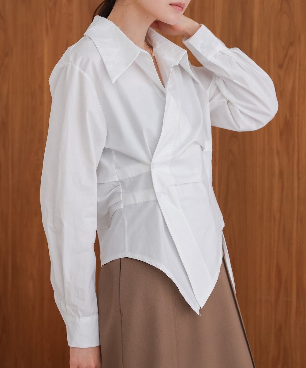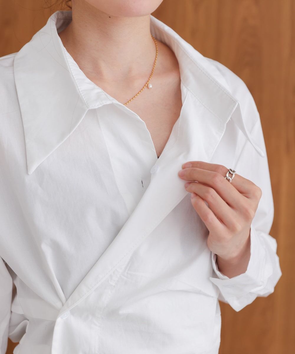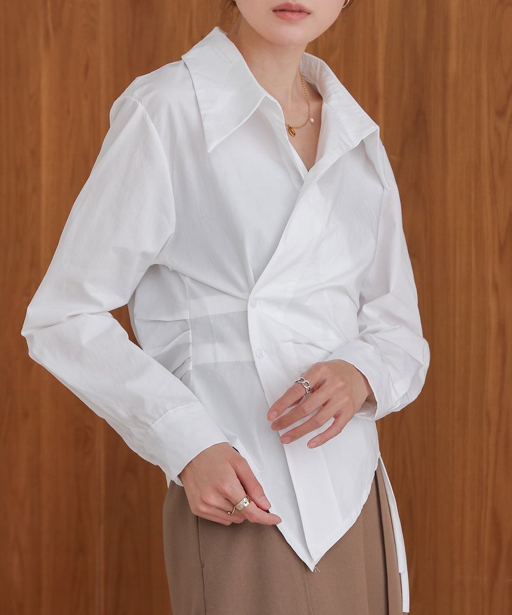 シャープなイレギュラーヘムも着こなしのアクセントになり、1枚だけで女性らしい着映えを叶えてくれる1着になりました。