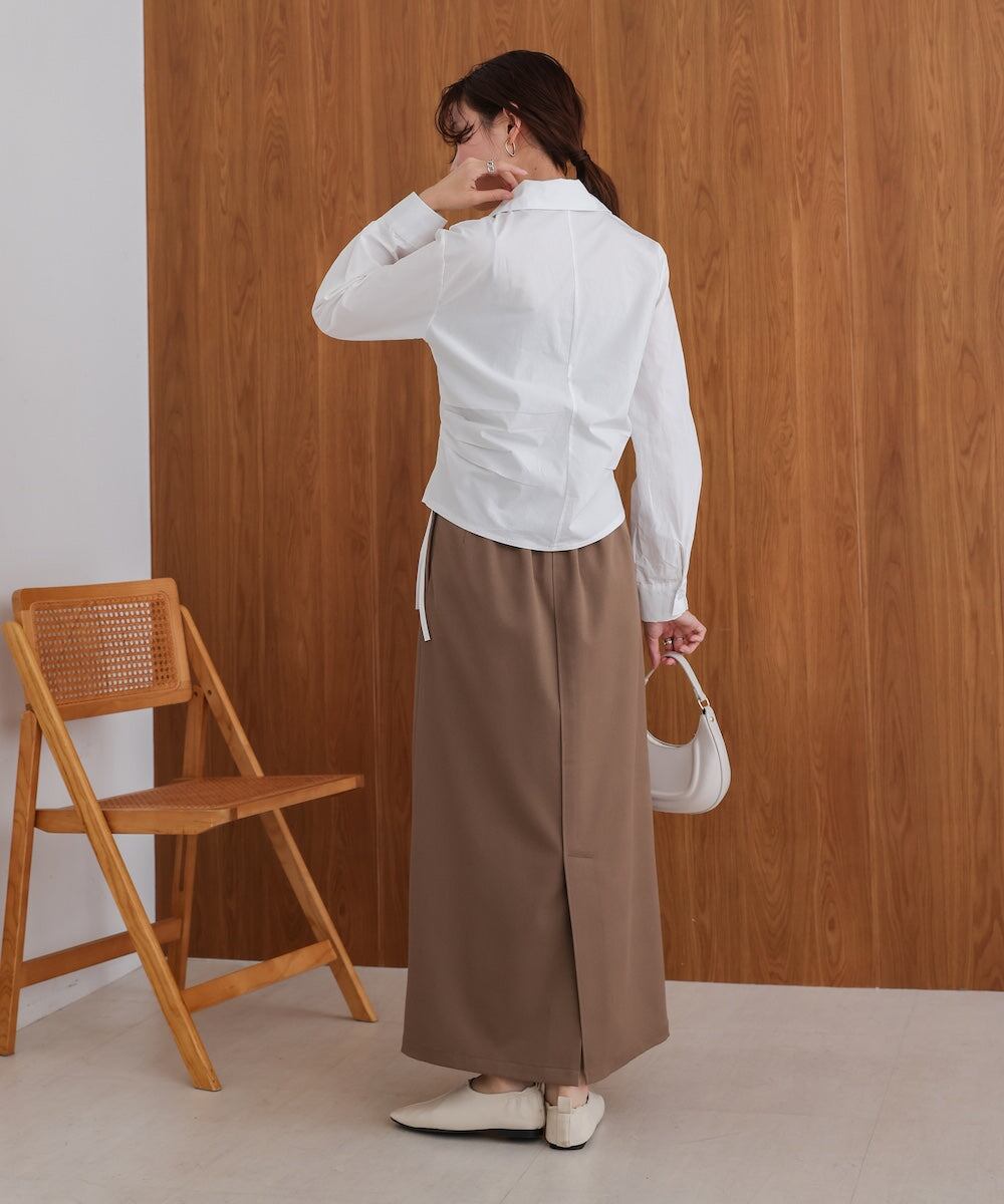 すっきりとしたツイルスカートでクリーンな着こなしも好印象です。