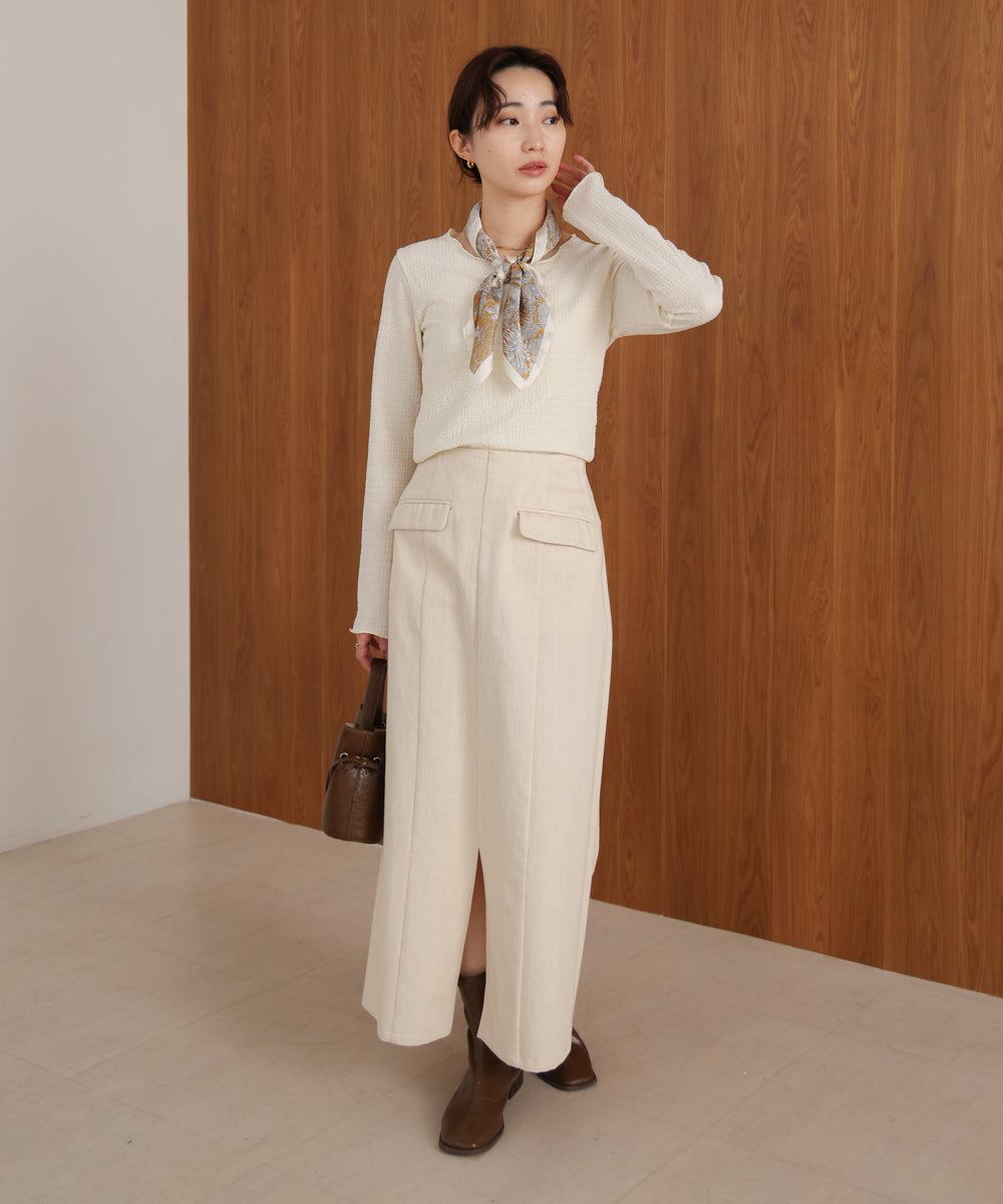 さらっとスカート合わせでフェミニンで優しい印象に。