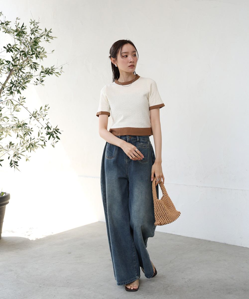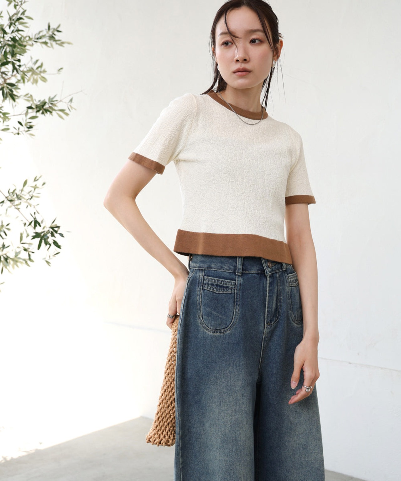 シンプルながら首元と袖口に施された配色が目を惹くリンガーニットTシャツの登場!