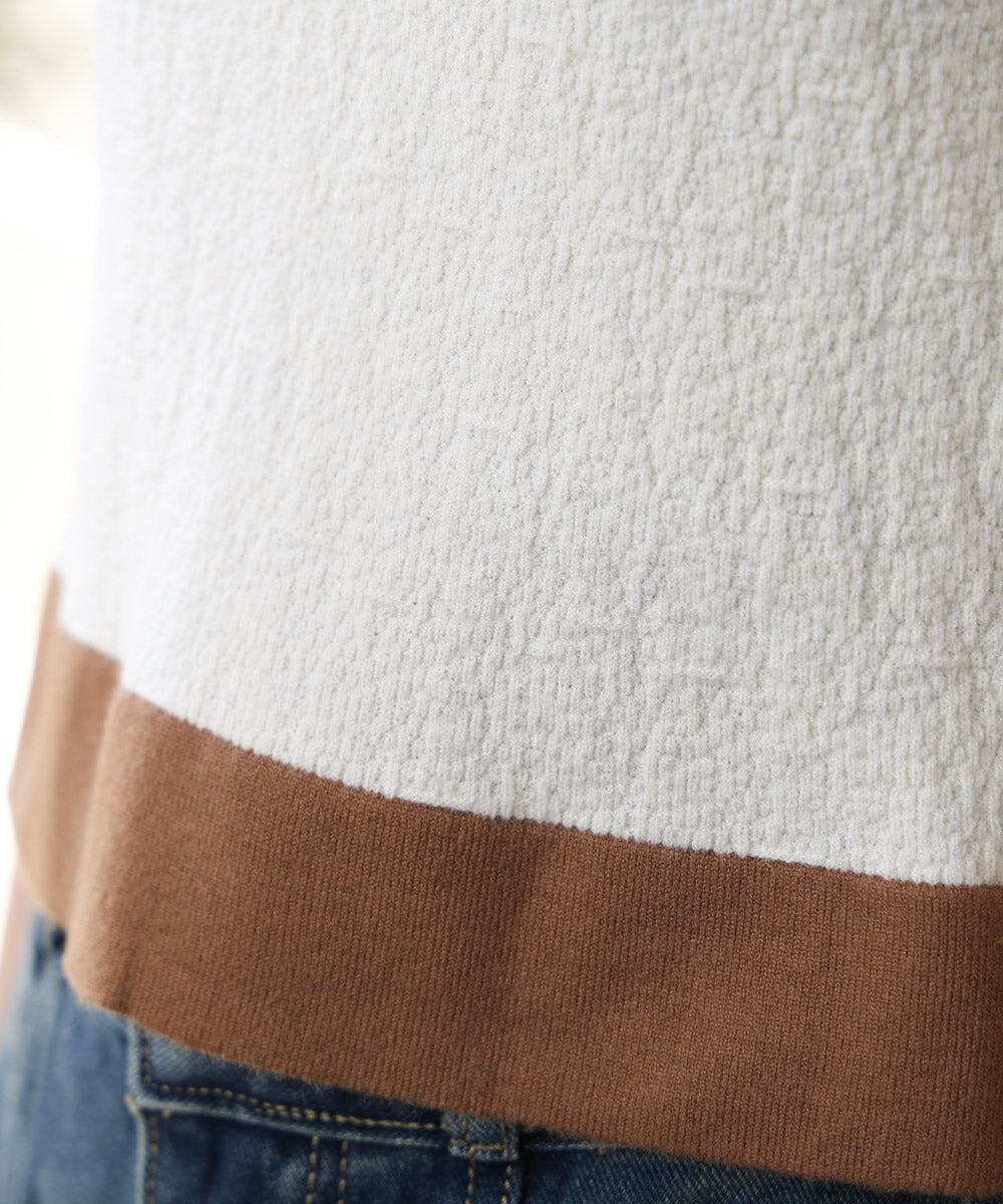 柔らかくて伸縮性があるので楽な着心地。粗目の表面感でカジュアルな中にも少しクラシックな雰囲気を持っているので大人っぽく着こなすことができます。