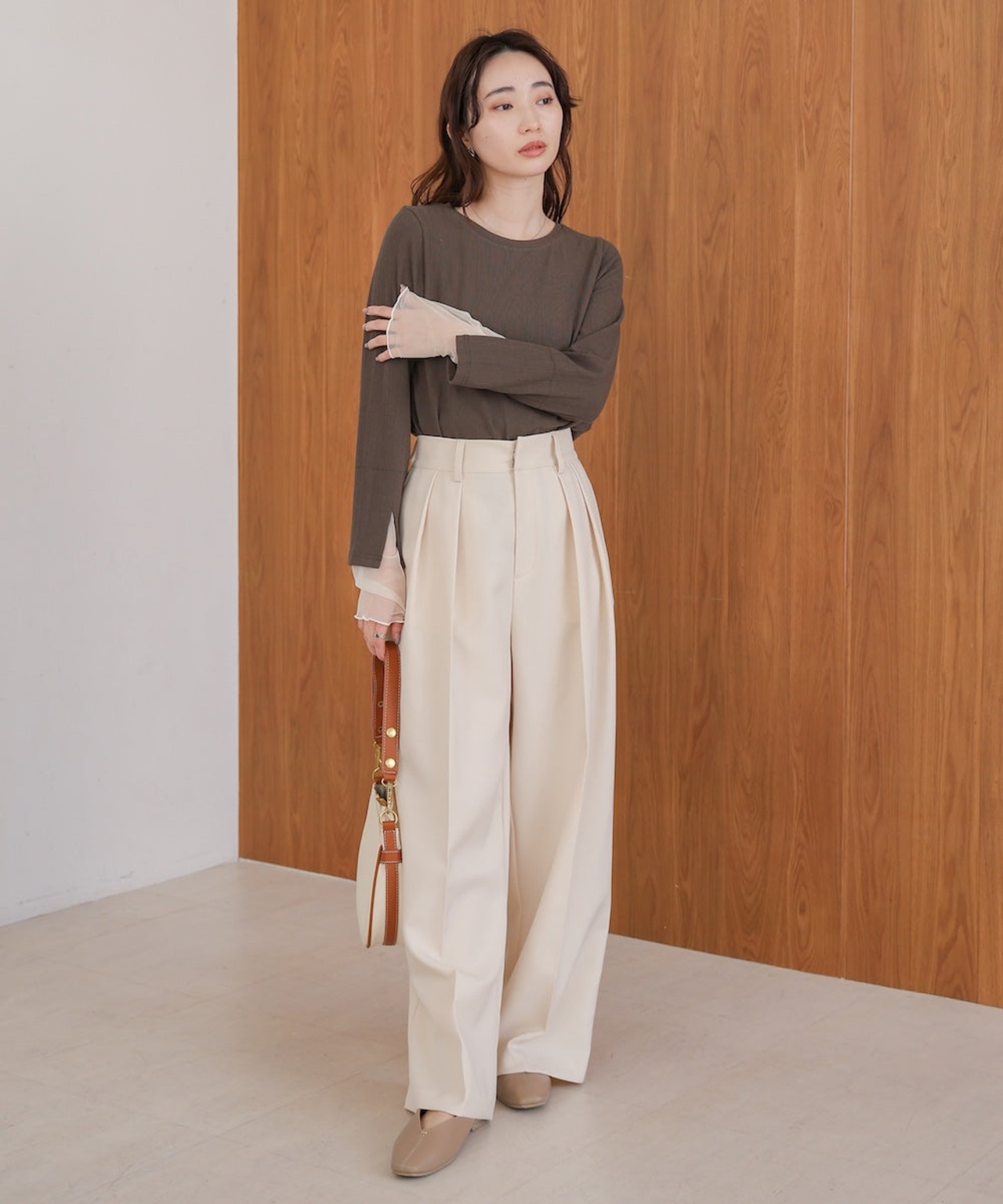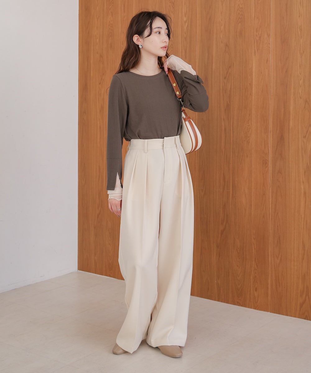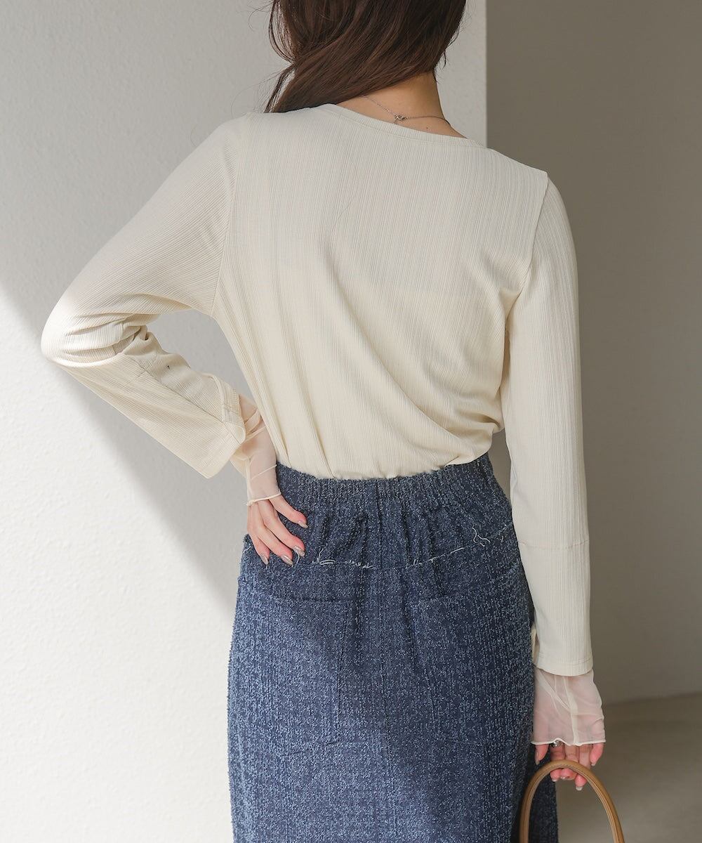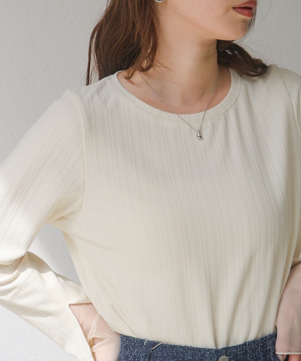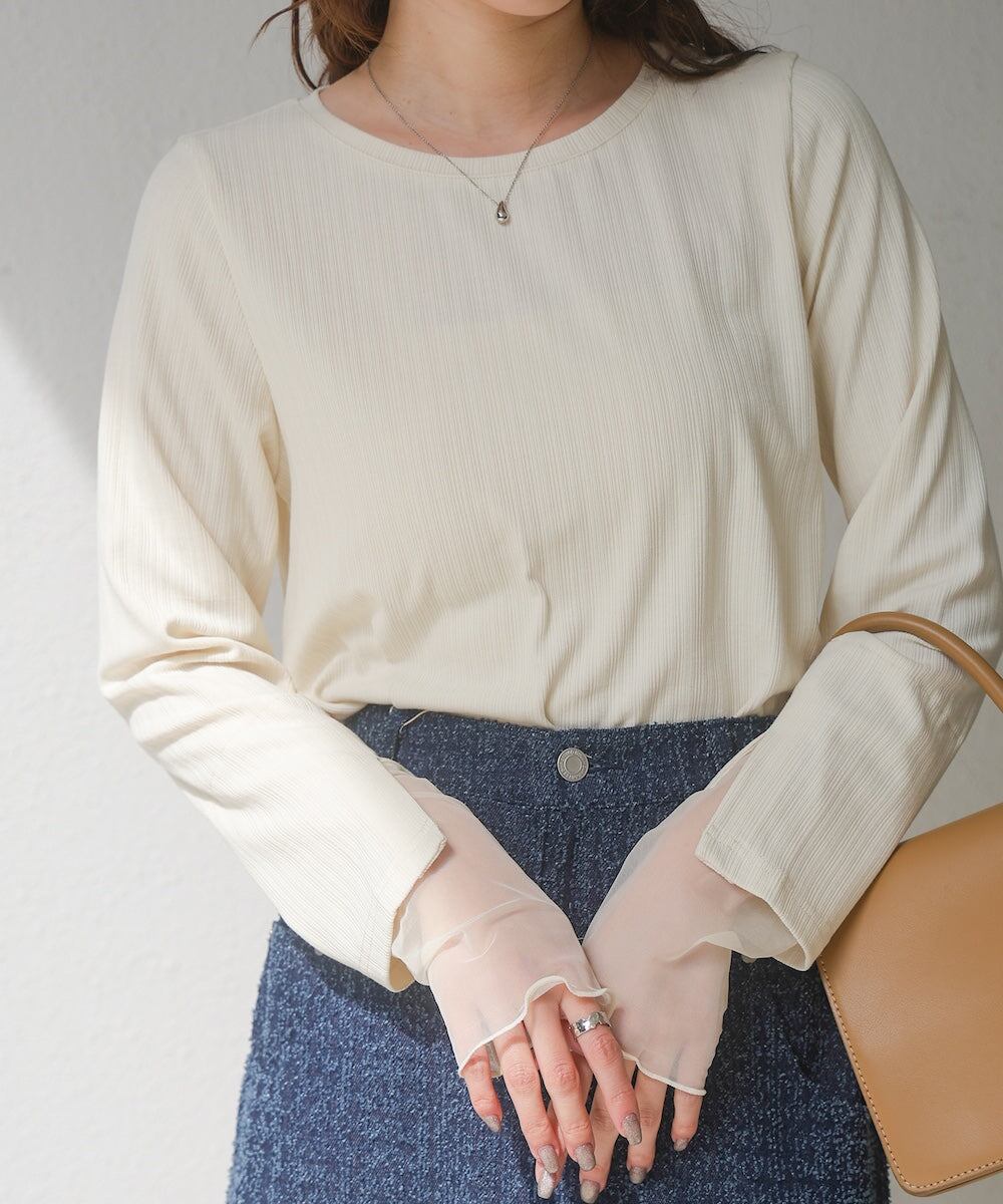 程よい厚みのリブトップスに、チュールのレイヤー見えディティールをドッキングしてBabらしい一癖デザインになりました!袖口の深めのスリットでさらに抜け感を出し、シンプルなクルーネックは襟の開き具合もコンパクトめなので 上品な雰囲気でお召し頂けます。ボディラインを強調しないサイズ感が大人女子にうれしい1枚です。