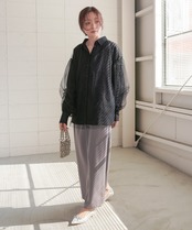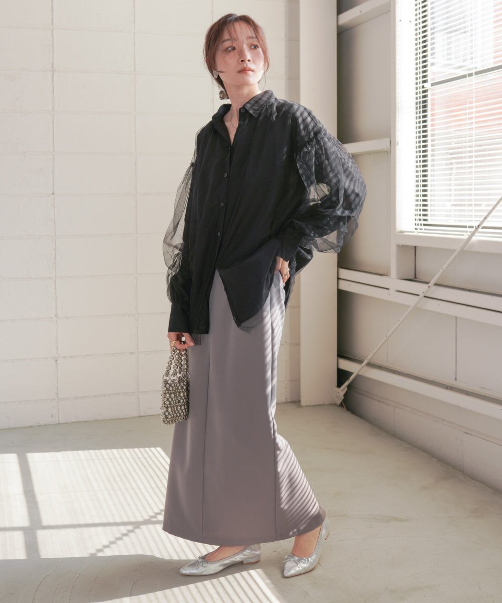 フェミニンなチュール使いのシャツでカジュアルに寄り過ぎないスタイリングをお楽しみ頂ける1枚♪旬なナロースカートでのデイリーユースはもちろん、キレイめスラックスでオフィスカジュアルにも馴染みます。ハンサムなカーブデニムで今年らしい着こなしも◎