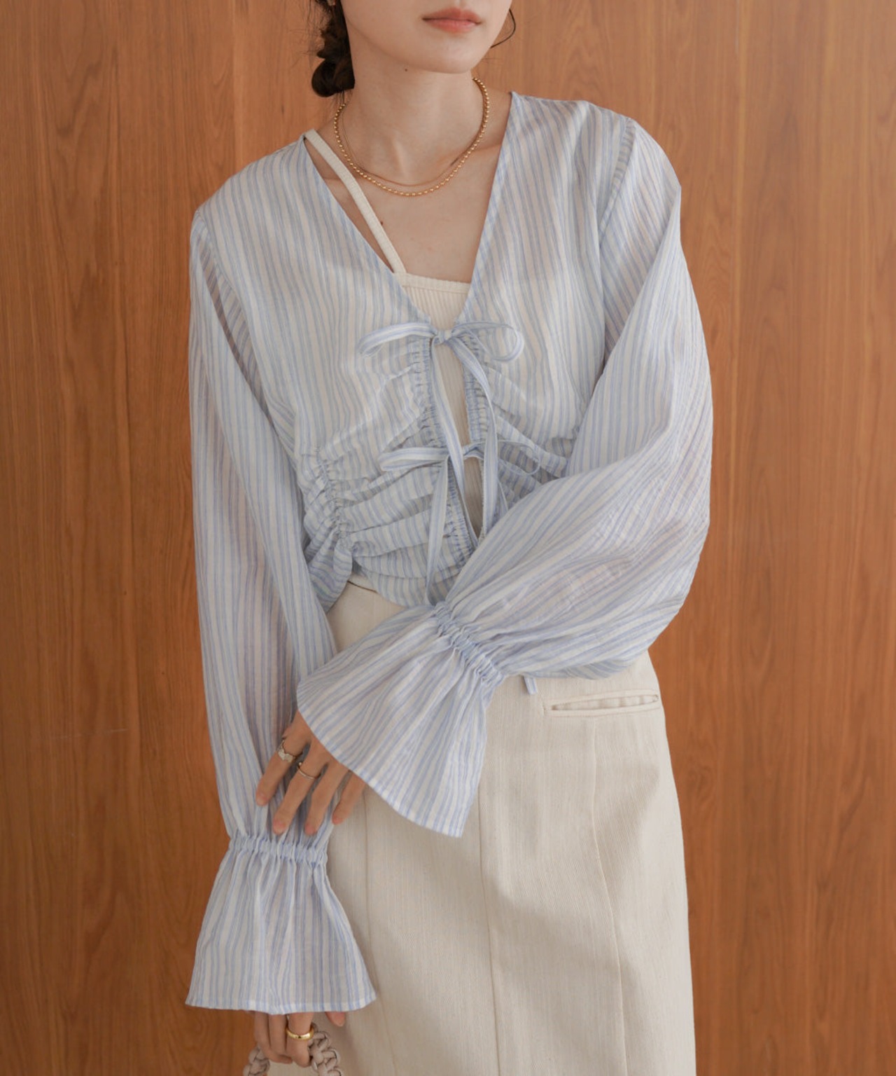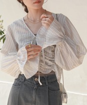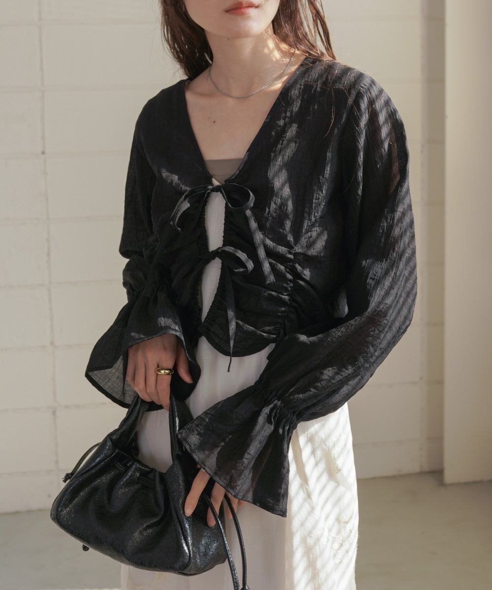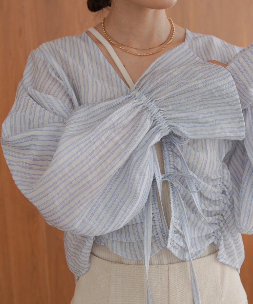 ギャザーキャンディースリーブブラウス