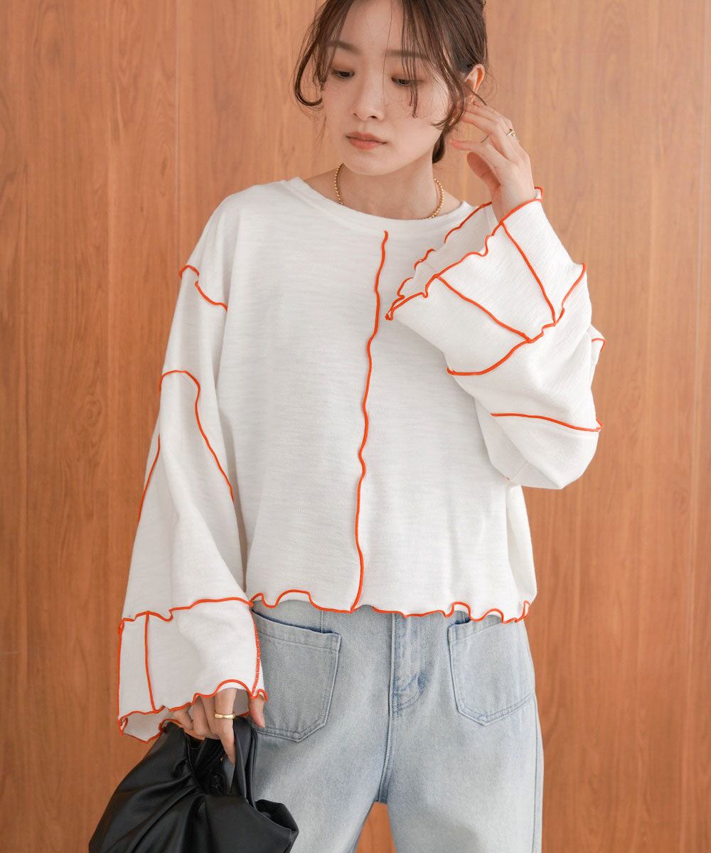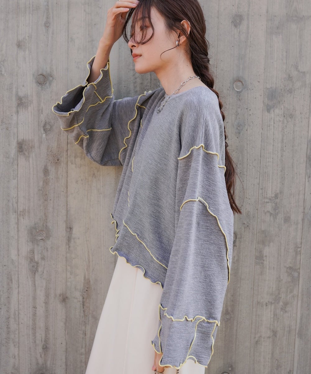 配色メローショートトップス
