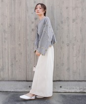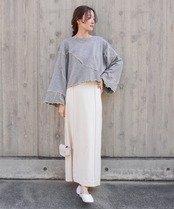 ショート丈でスカートやパンツスタイルどちらにも合わせやすいので、1枚あると重宝します。
