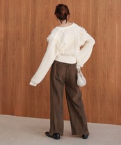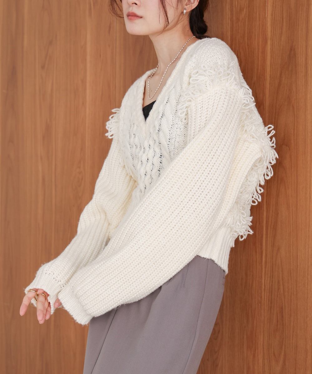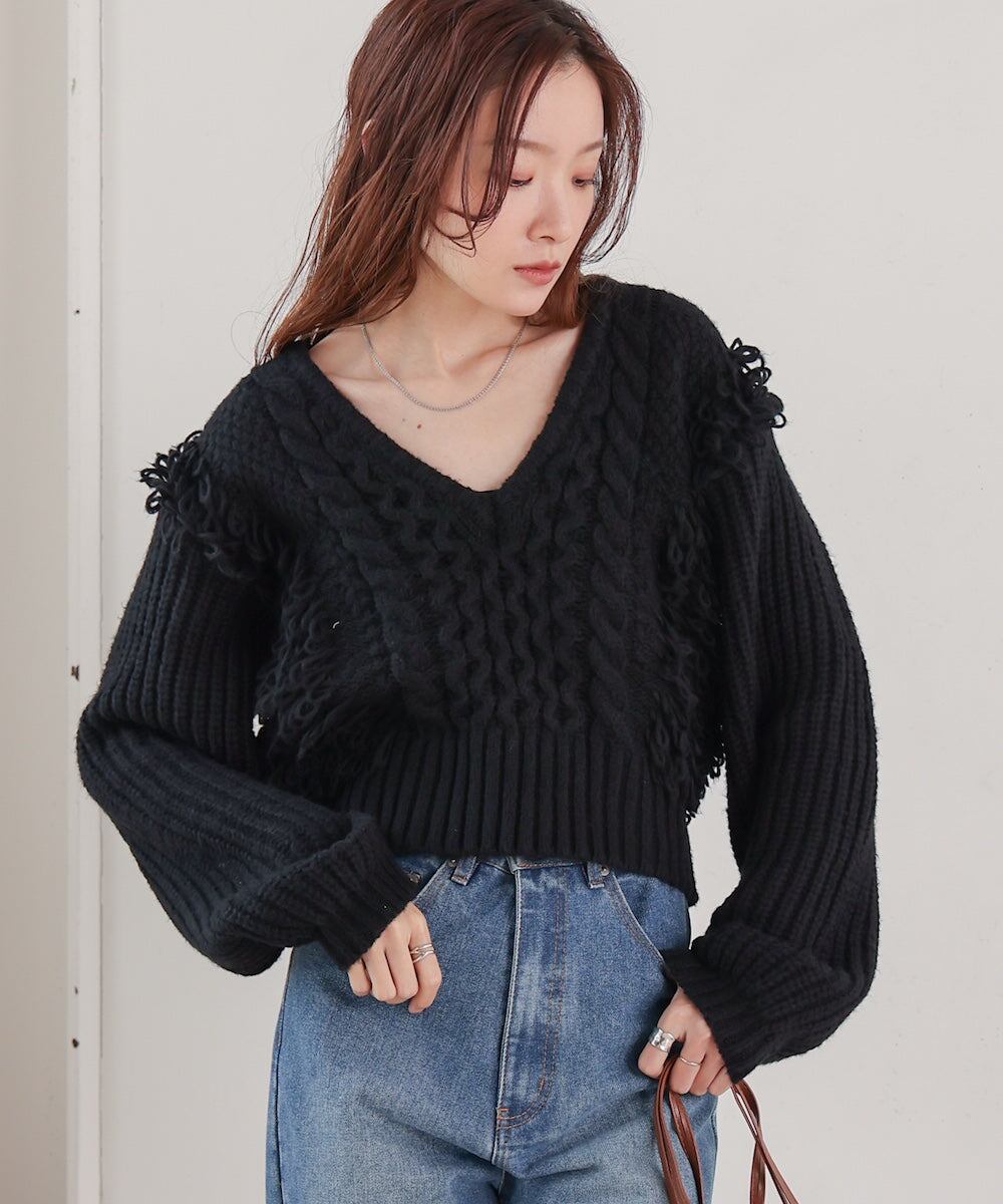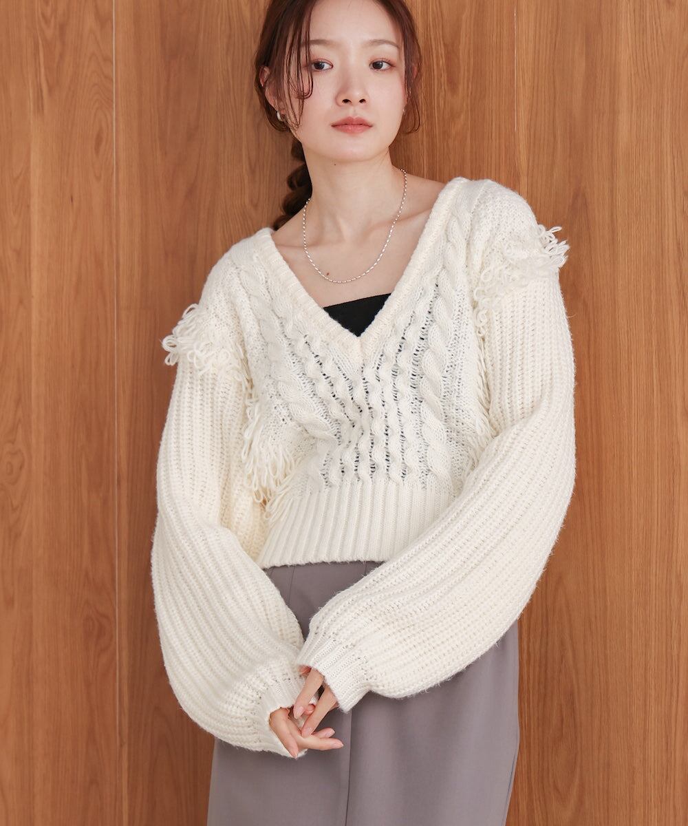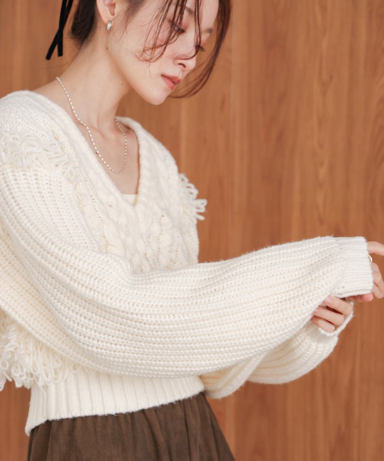 ふっくらとしたバルキー編みニットが新登場!カジュアルな中にも深めのVネックで女性らしい印象を与えてくれます。