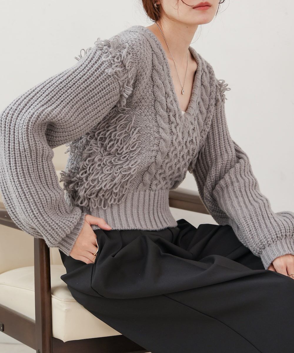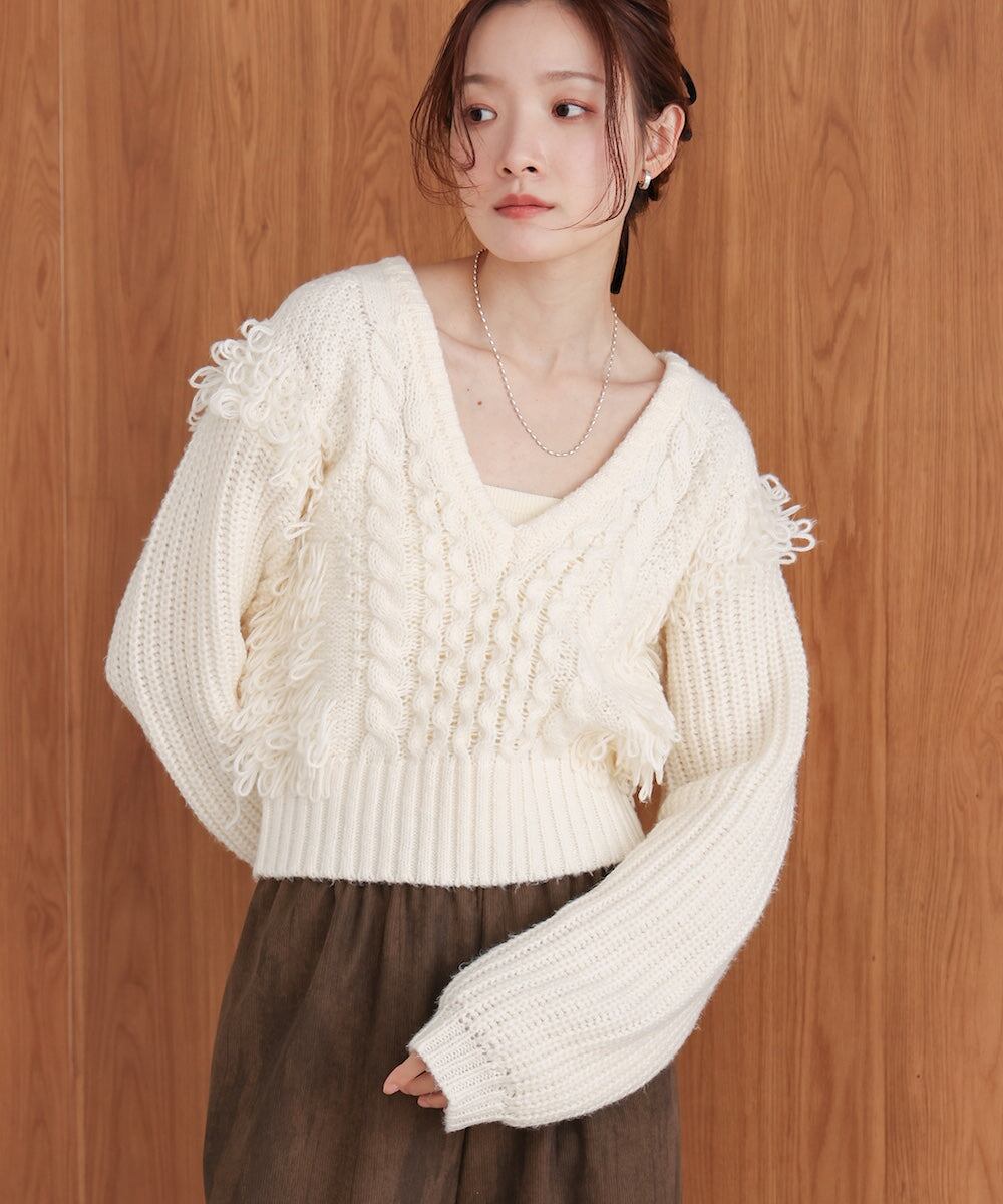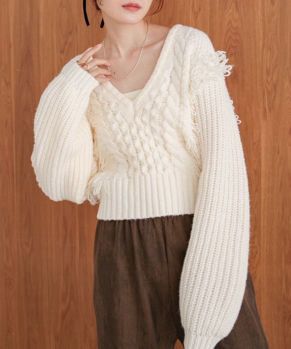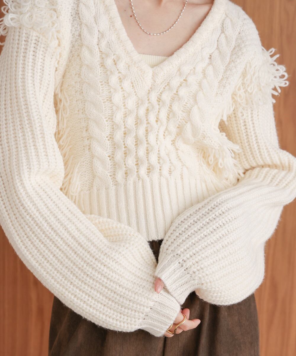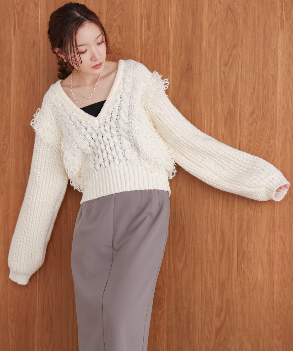 ふっくらとしたバルキー編みニットが新登場!カジュアルな中にも深めのVネックで女性らしい印象を与えてくれます。