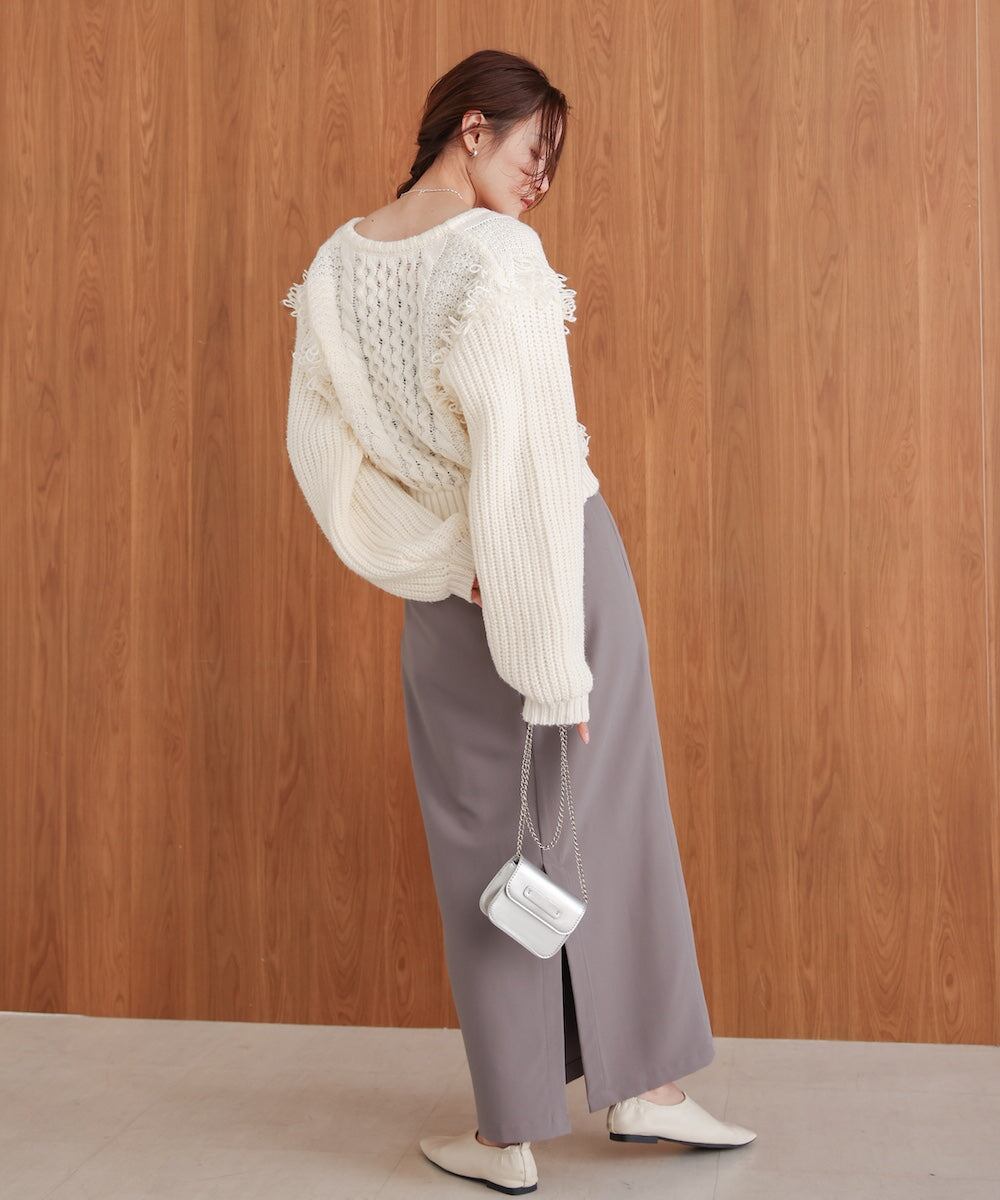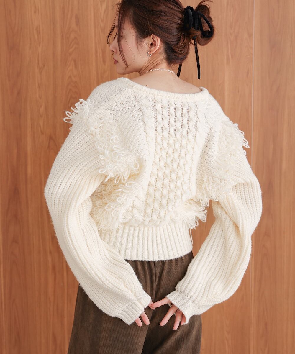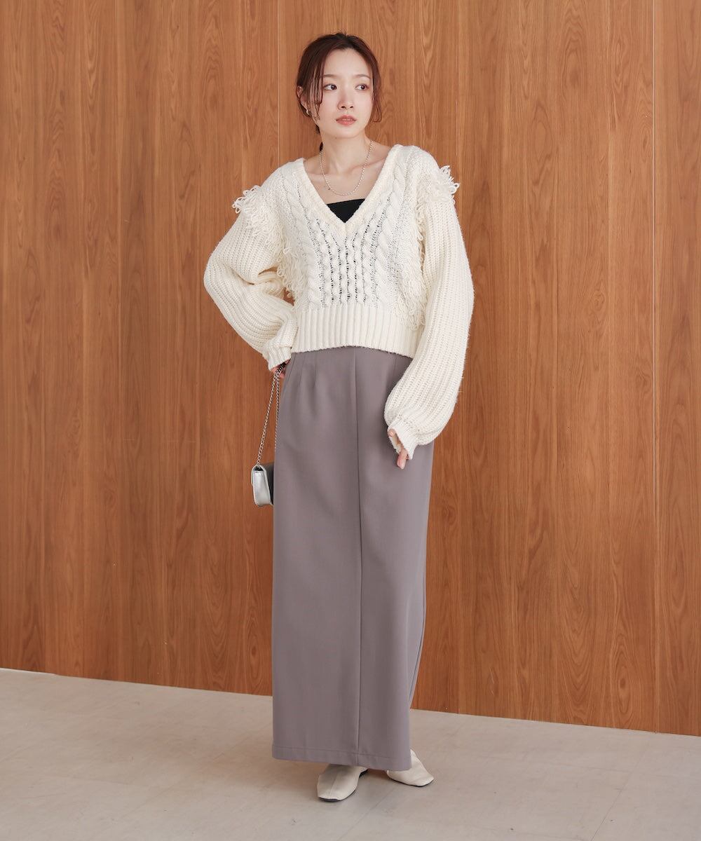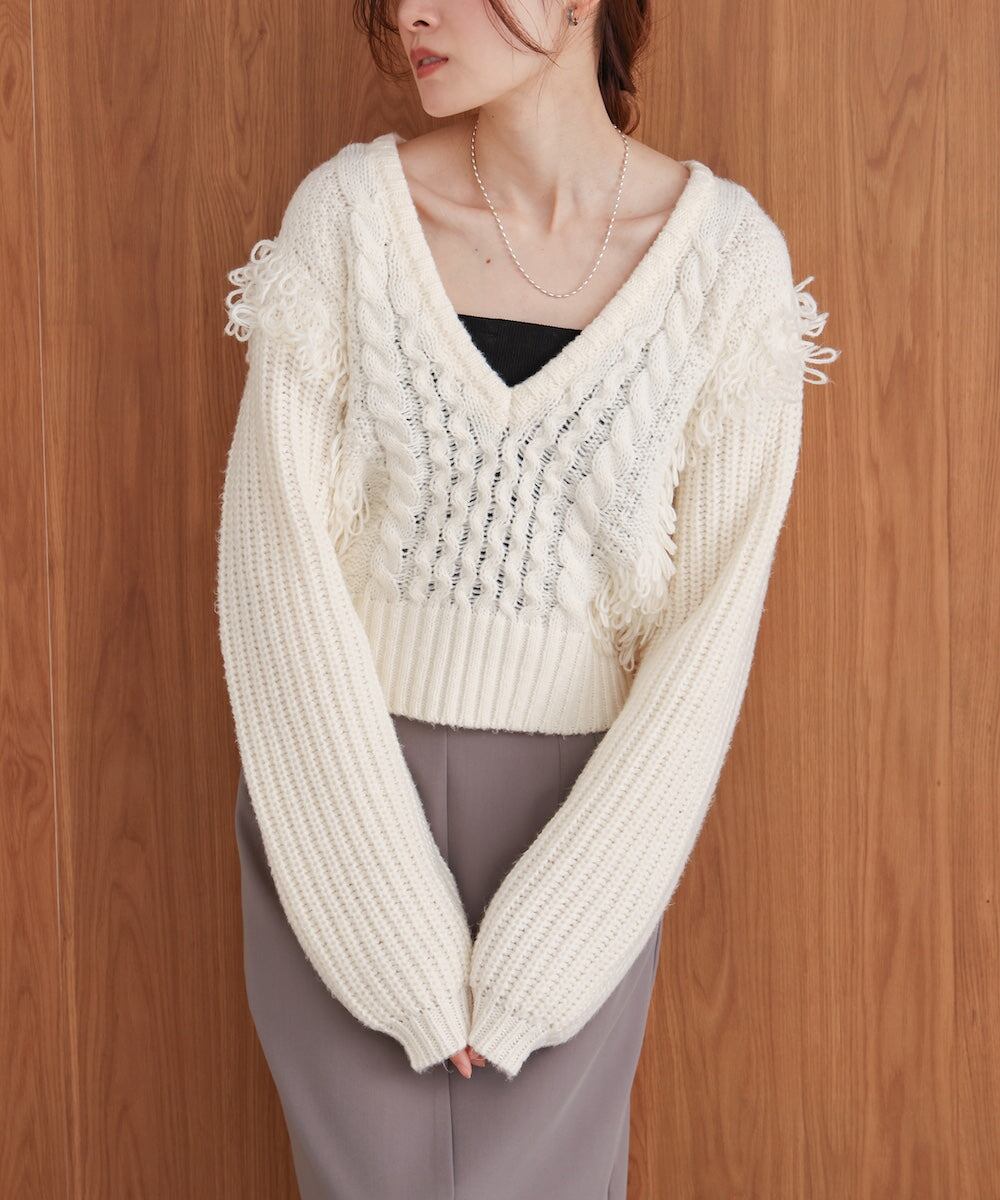 ふっくらとしたバルキー編みニットが新登場!カジュアルな中にも深めのVネックで女性らしい印象を与えてくれます。