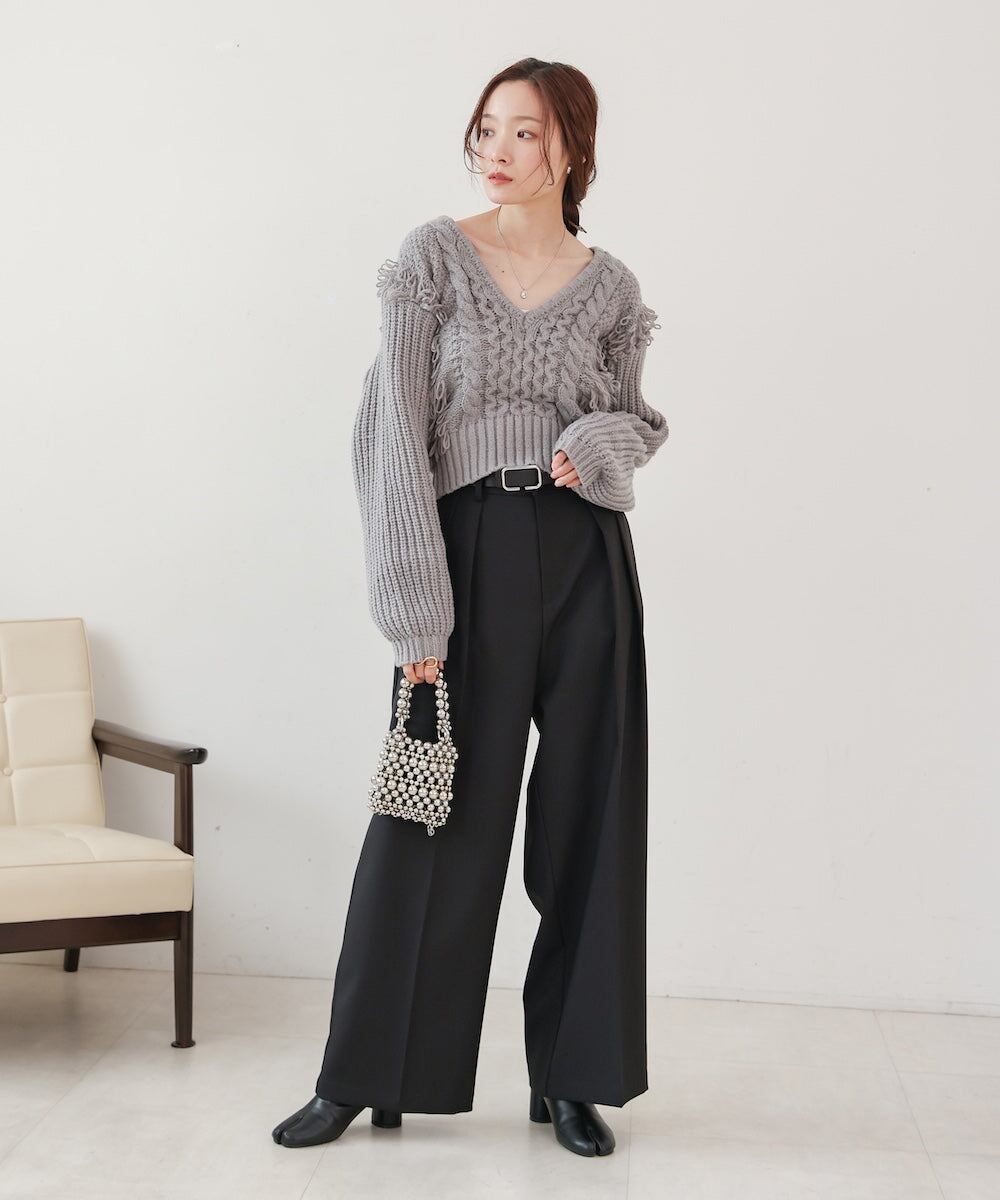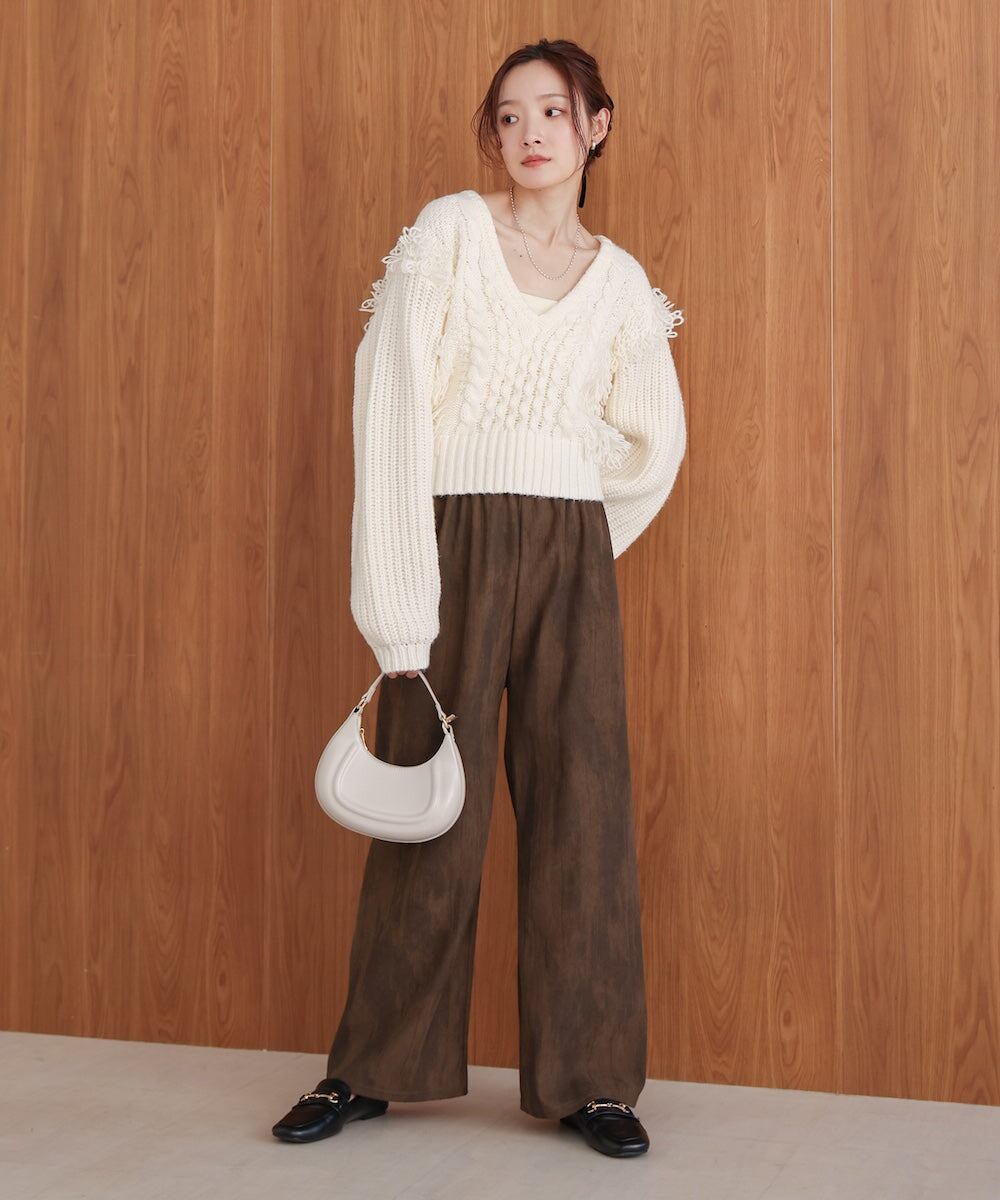 落ち感スラックスと上品に着こなせば、ホリデーシーズンのお食事会にも華を添えてくれます。